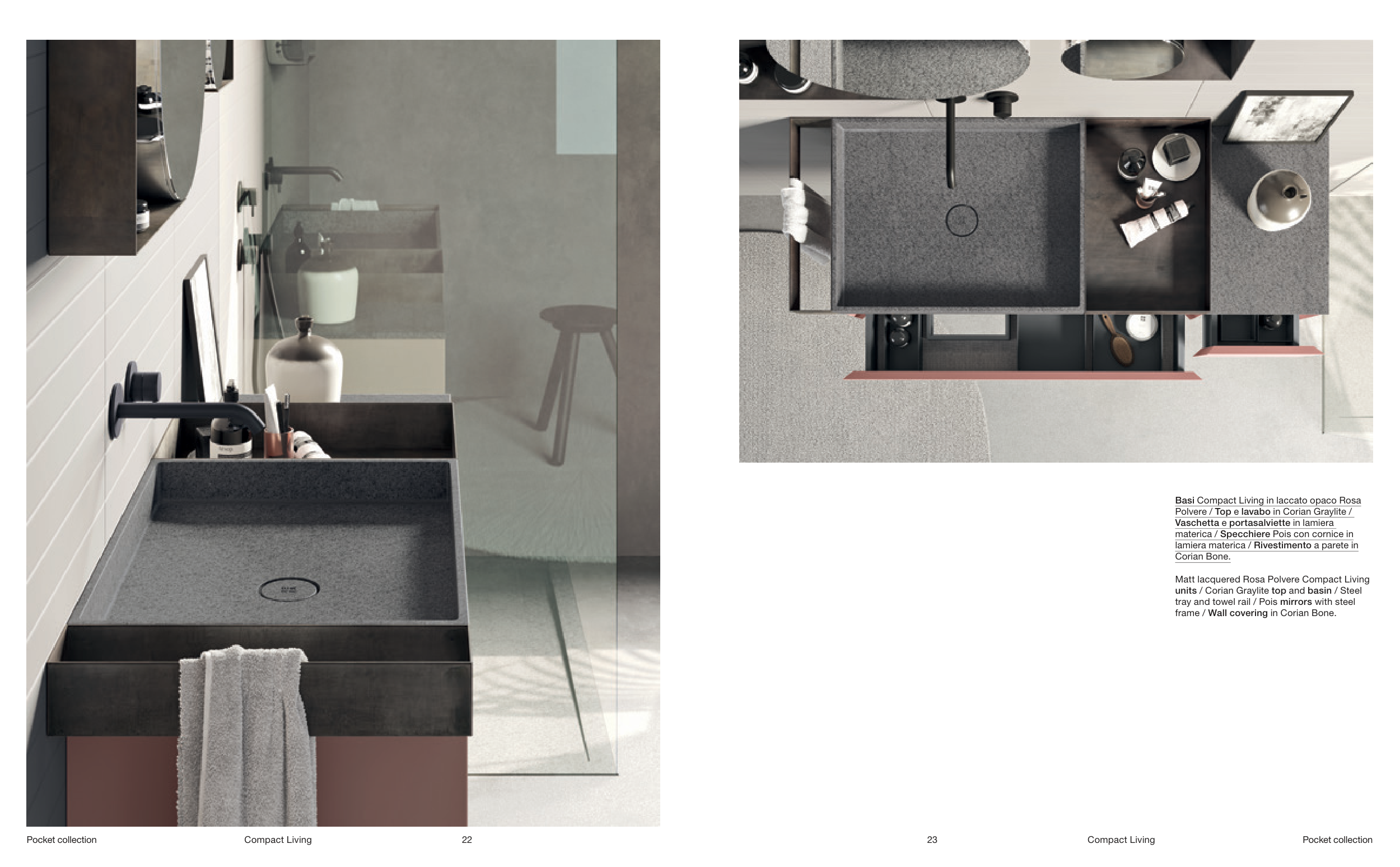 Polvere / Top e lavabo in Corian Graylite /