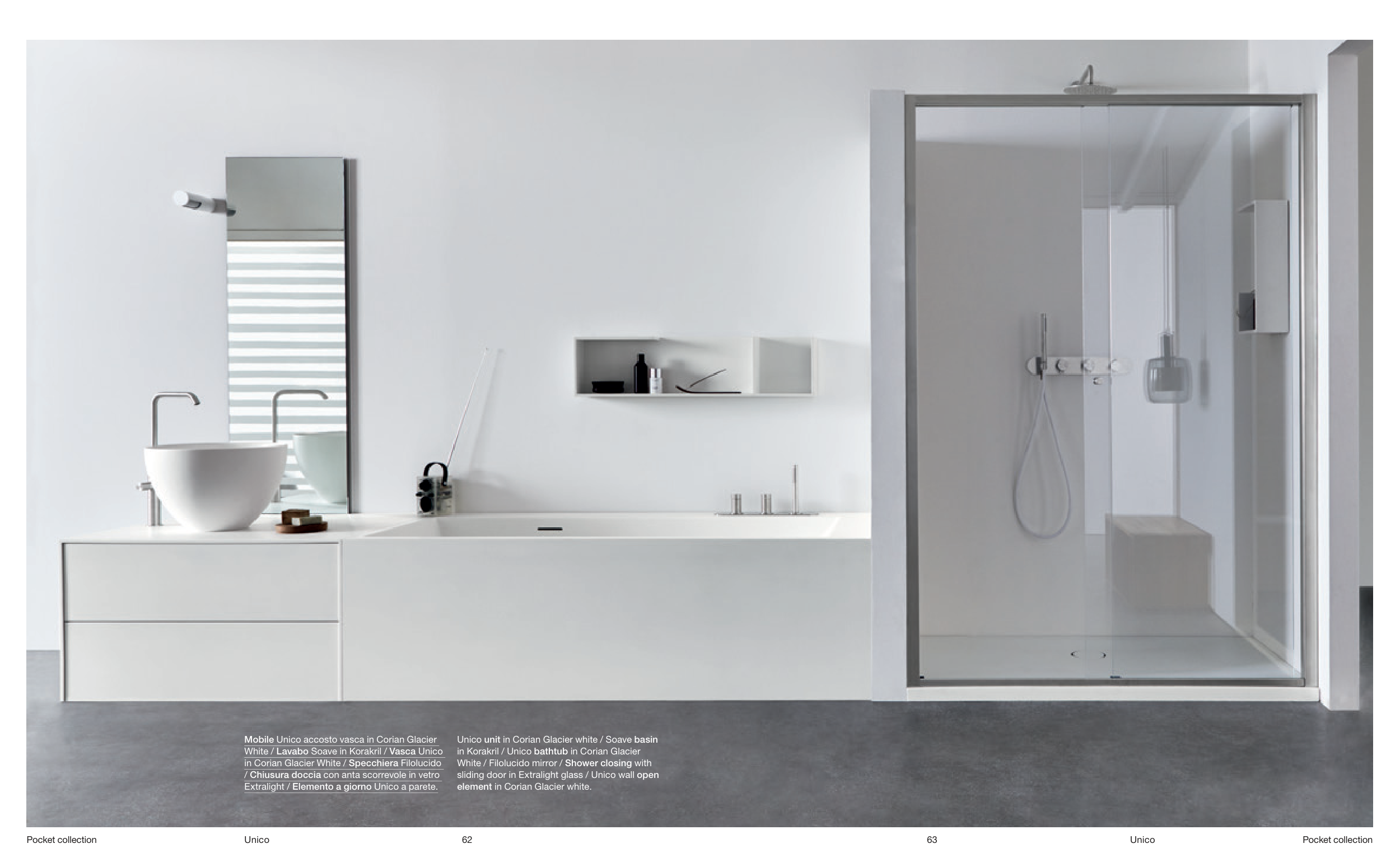 in Korakril / Unico bathtub in Corian Glacier