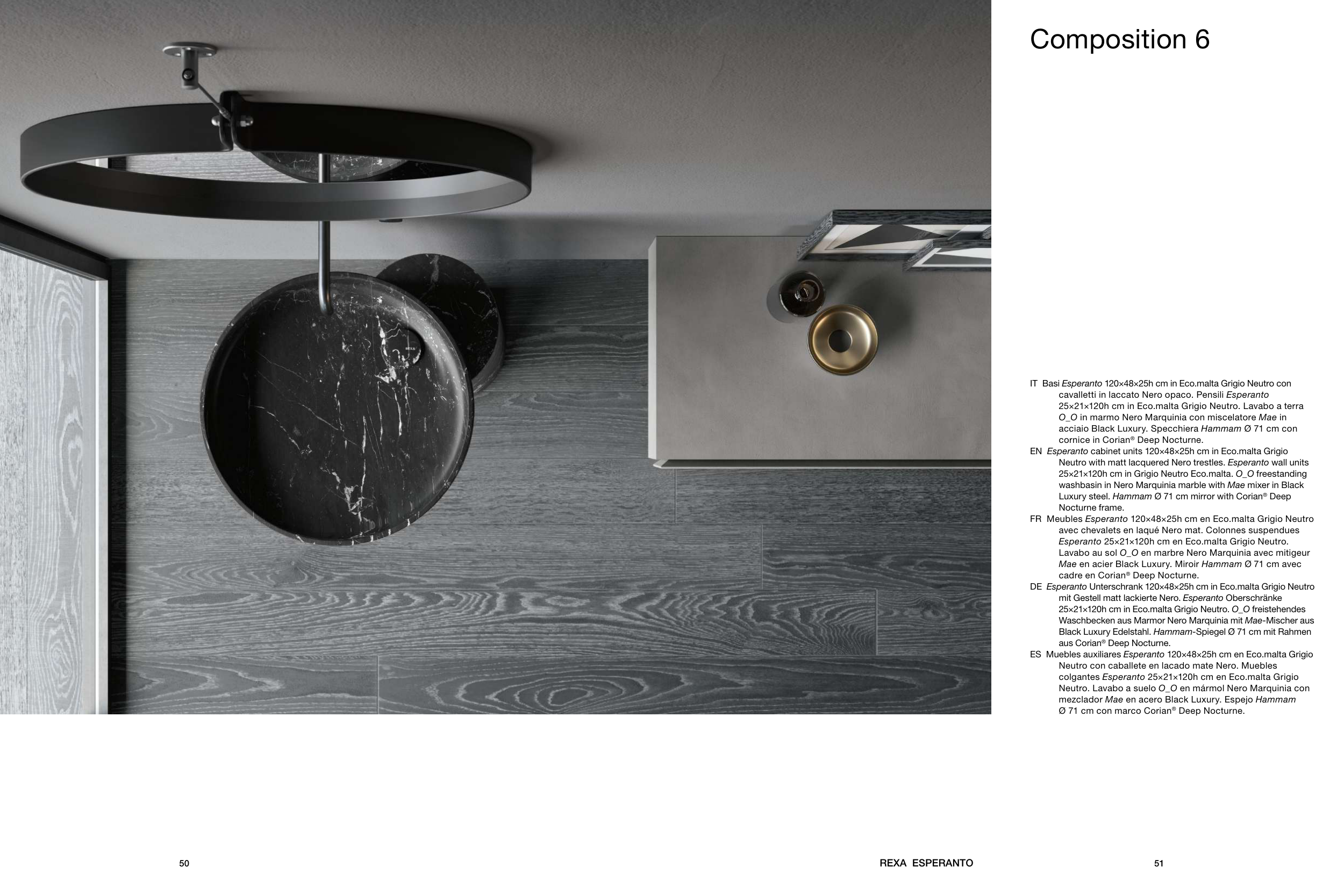O_O in marmo Nero Marquinia con miscelatore Mae in