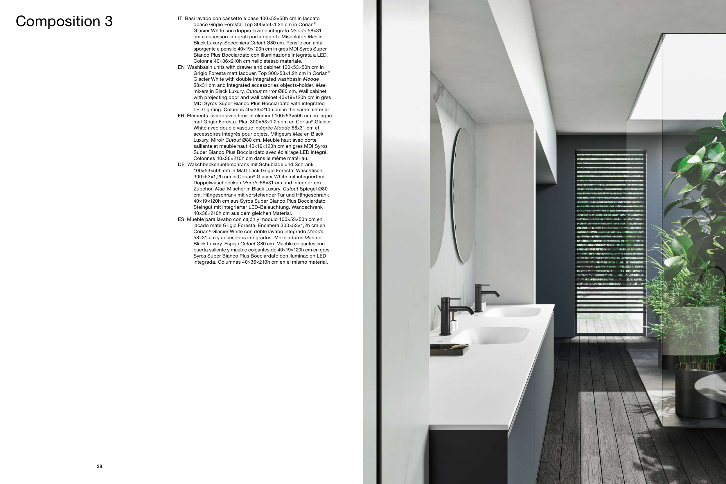 Grigio Foresta matt lacquer. Top 300×53×1.2h cm in Corian®