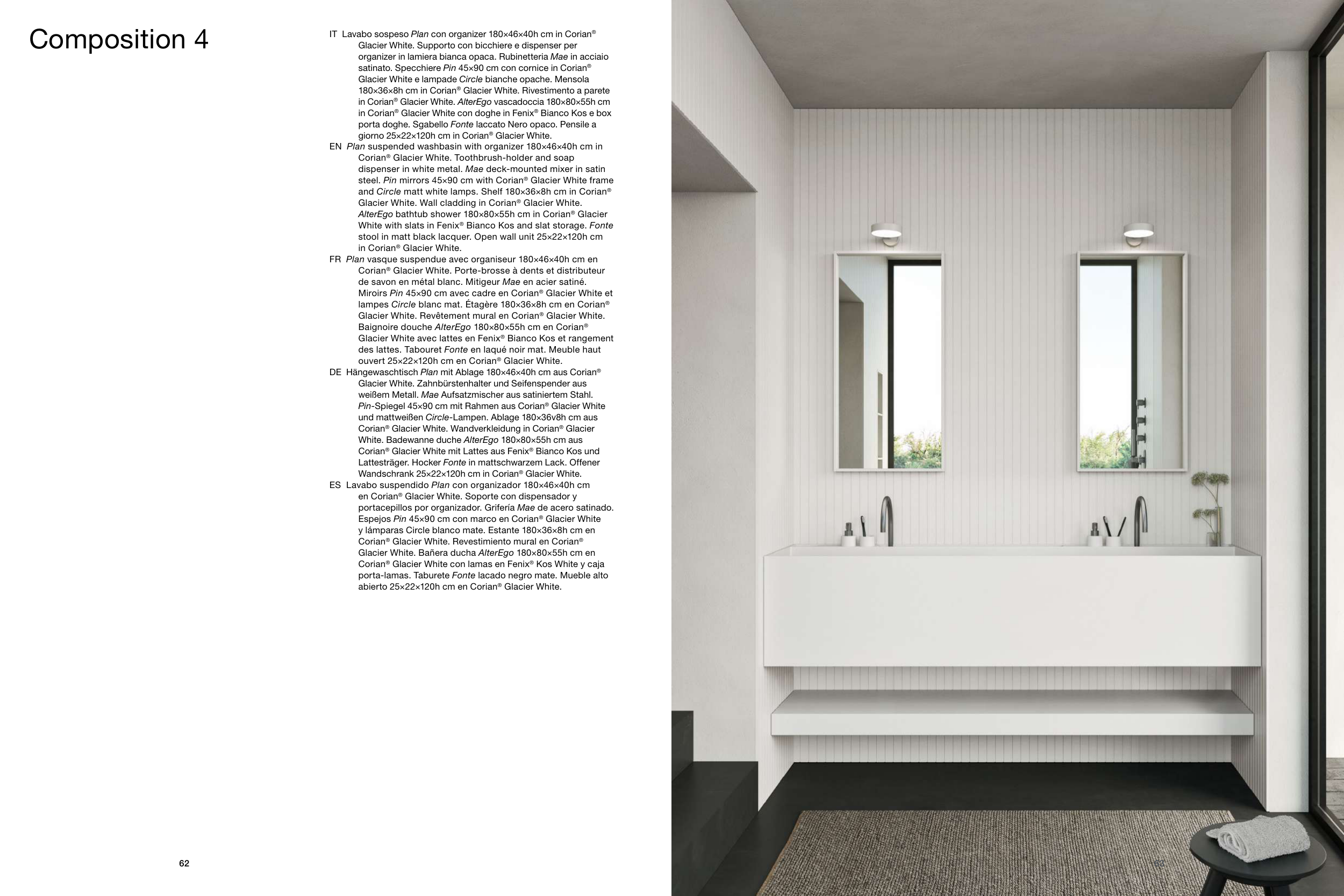 steel. Pin mirrors 45×90 cm with Corian® Glacier White frame