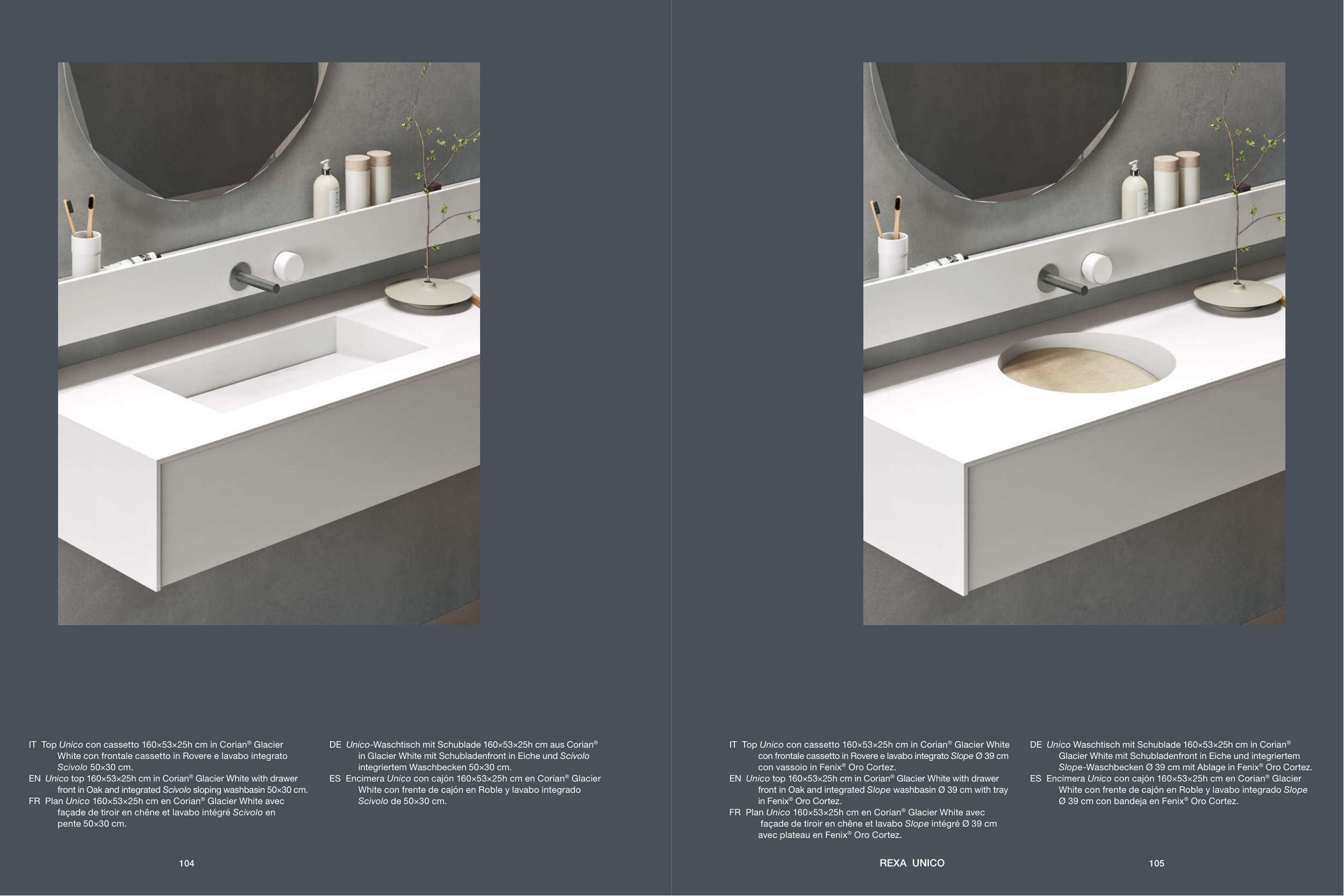 DE Unico-Waschtisch mit Schublade 160×53×25h cm aus Corian®