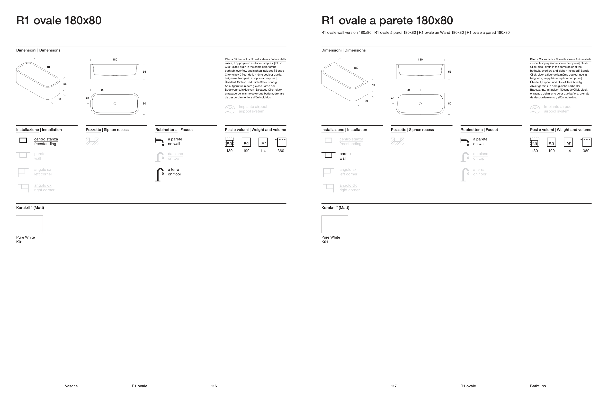 R1 ovale wall version 180x80 | R1 ovale à paroi 180x80 | R1 ovale an Wand 180x80 | R1 ovale a pared 180x80