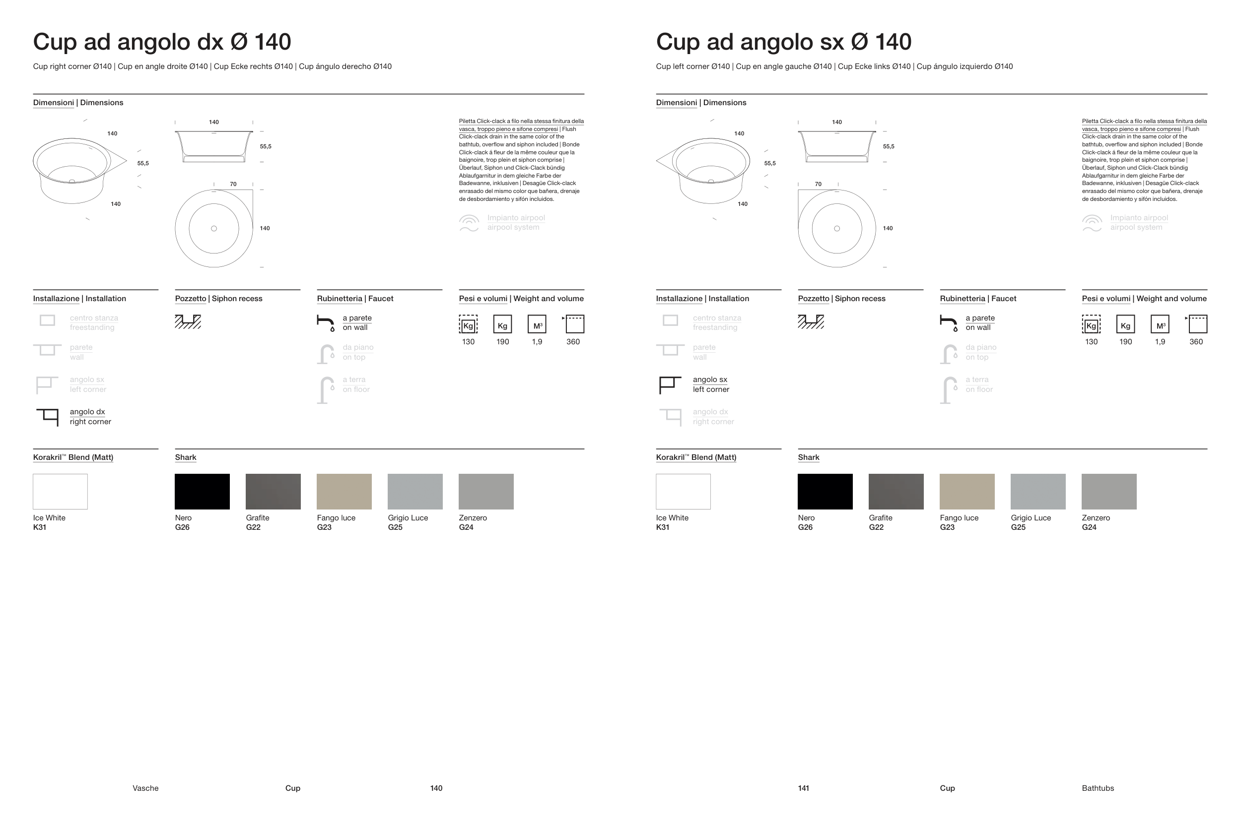Cup right corner Ø140 | Cup en angle droite Ø140 | Cup Ecke rechts Ø140 | Cup ángulo derecho Ø140