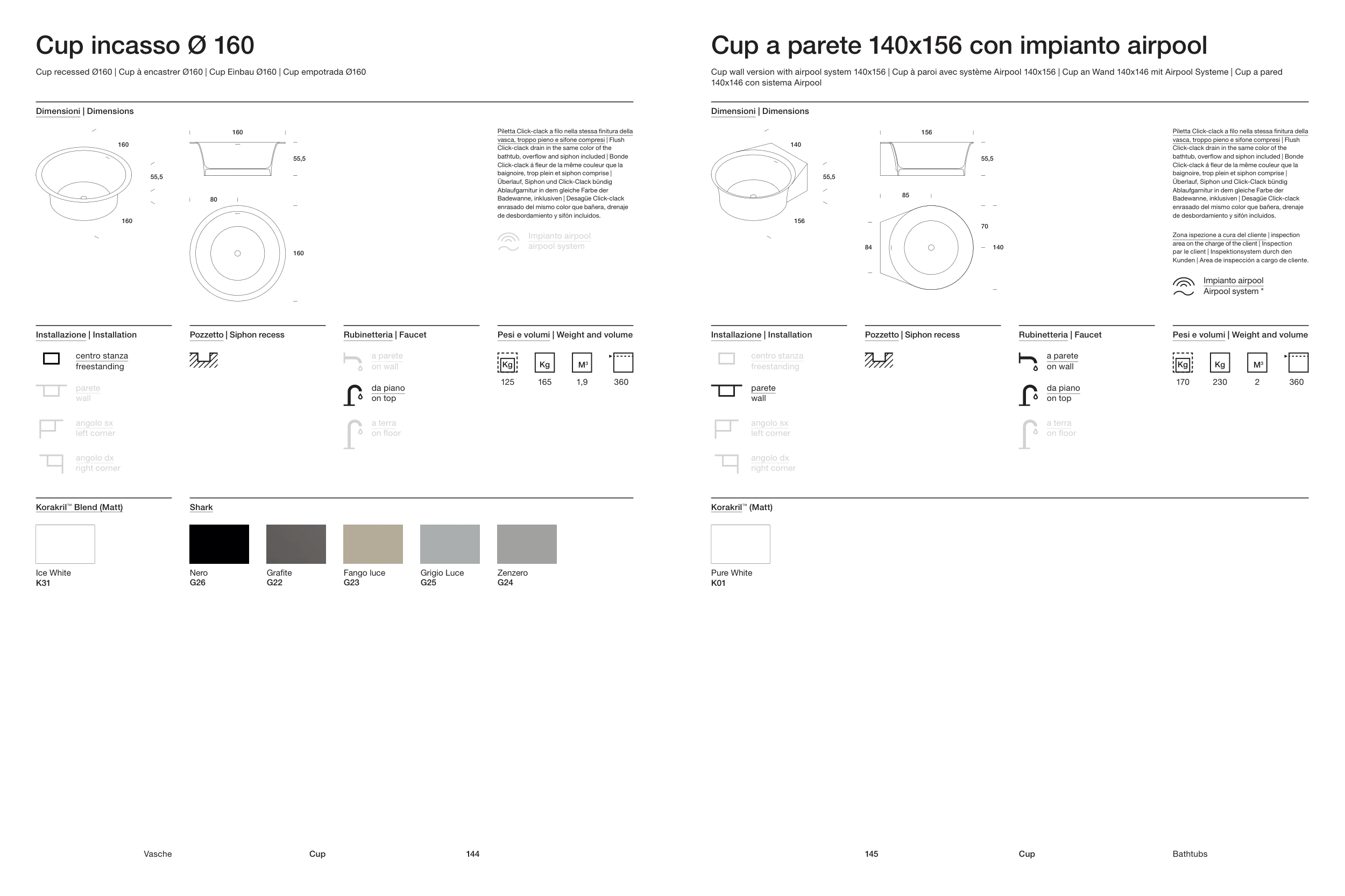 Cup wall version with airpool system 140x156 | Cup à paroi avec système Airpool 140x156 | Cup an Wand 140x146 mit Airpool Systeme | Cup a pared