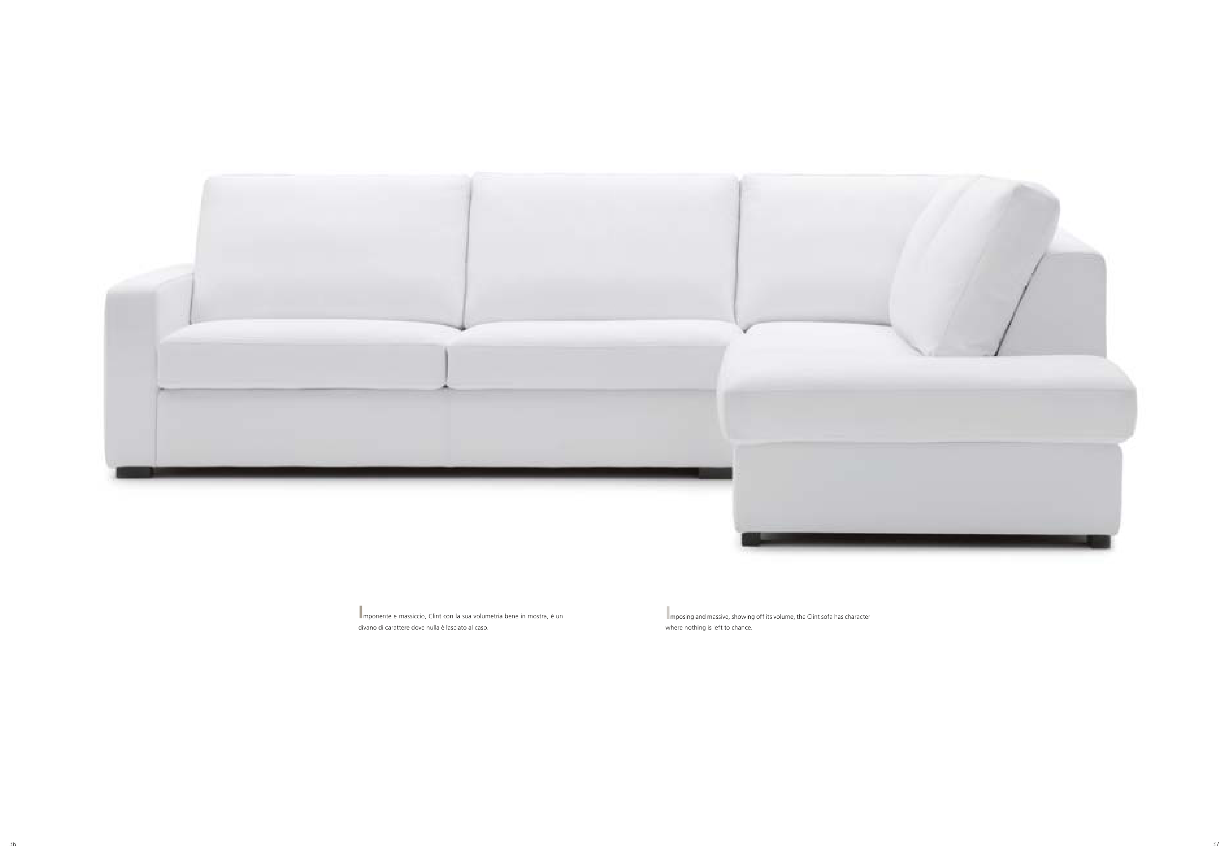 Imposing and massive, showing off its volume, the Clint sofa has character