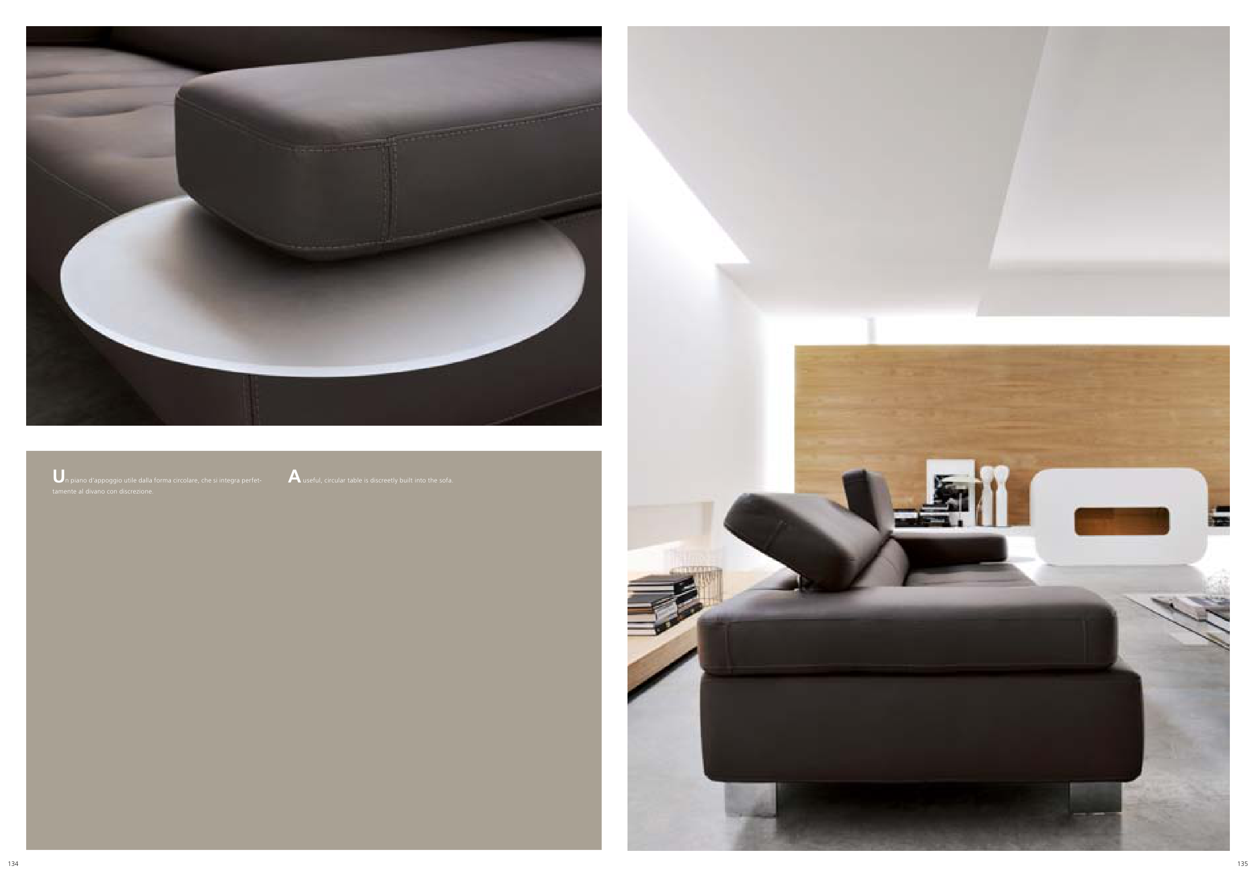 A useful, circular table is discreetly built into the sofa.
