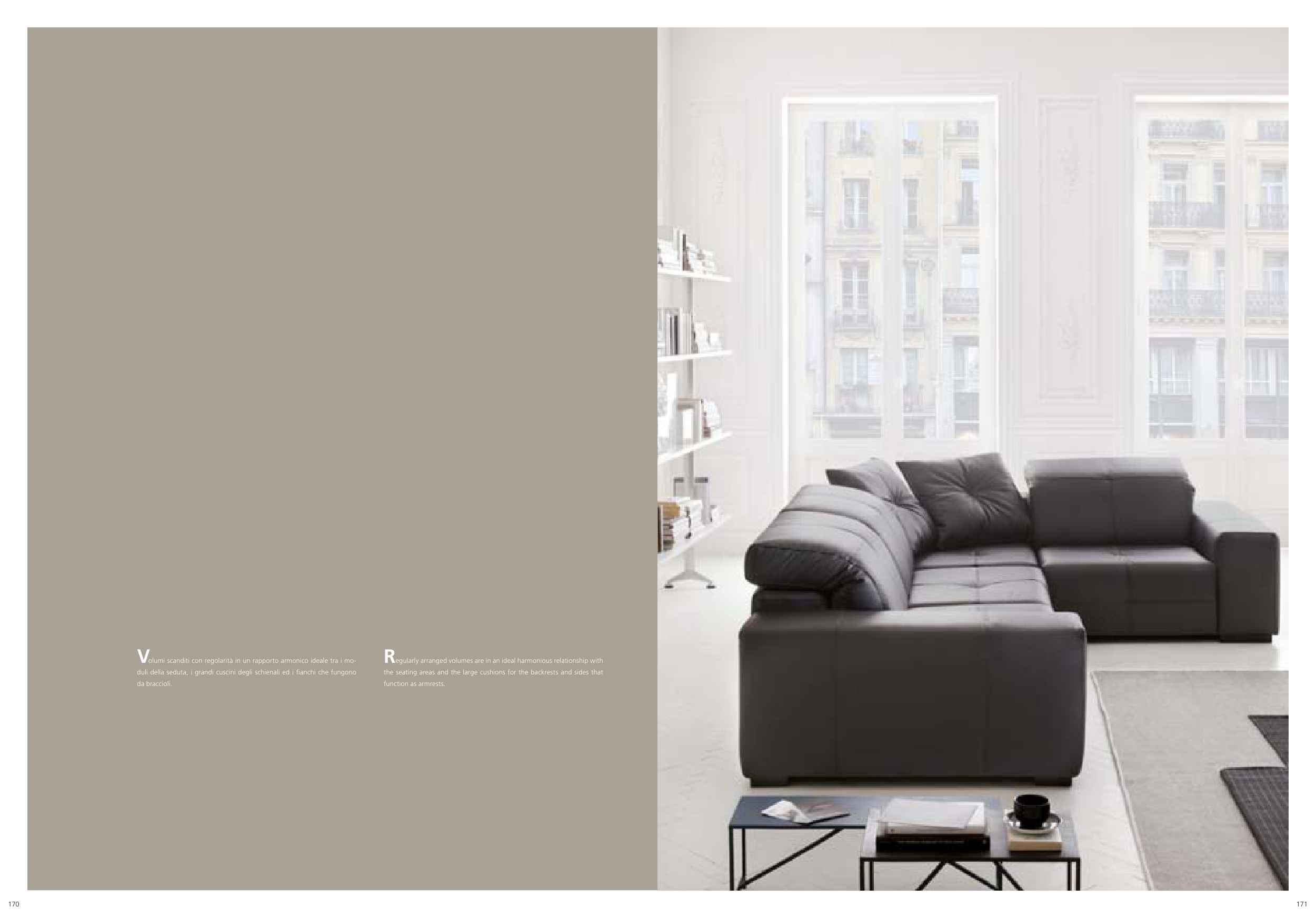 duli della seduta, i grandi cuscini degli schienali ed i fi anchi che fungono