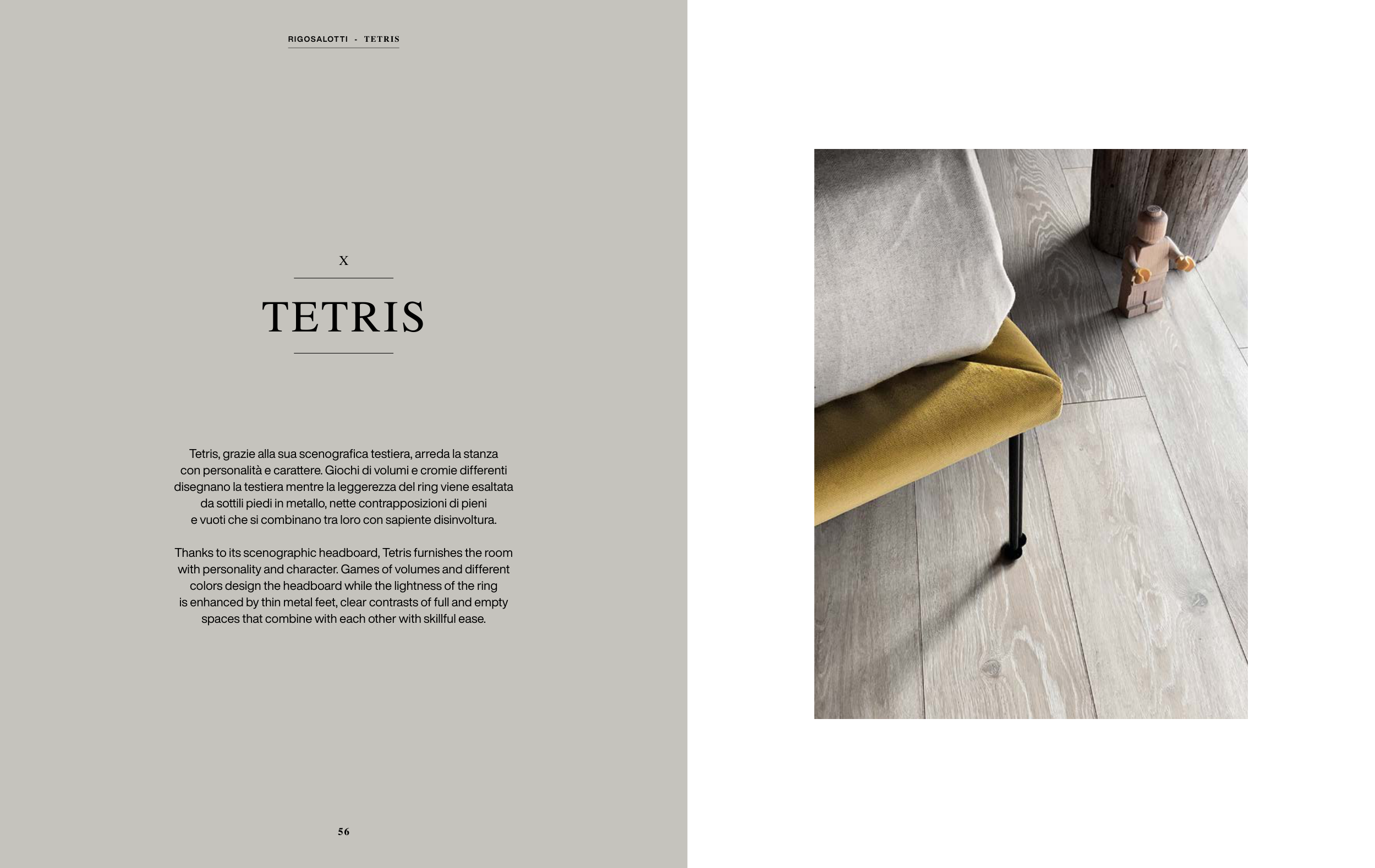 Thanks to its scenographic headboard, Tetris furnishes the room