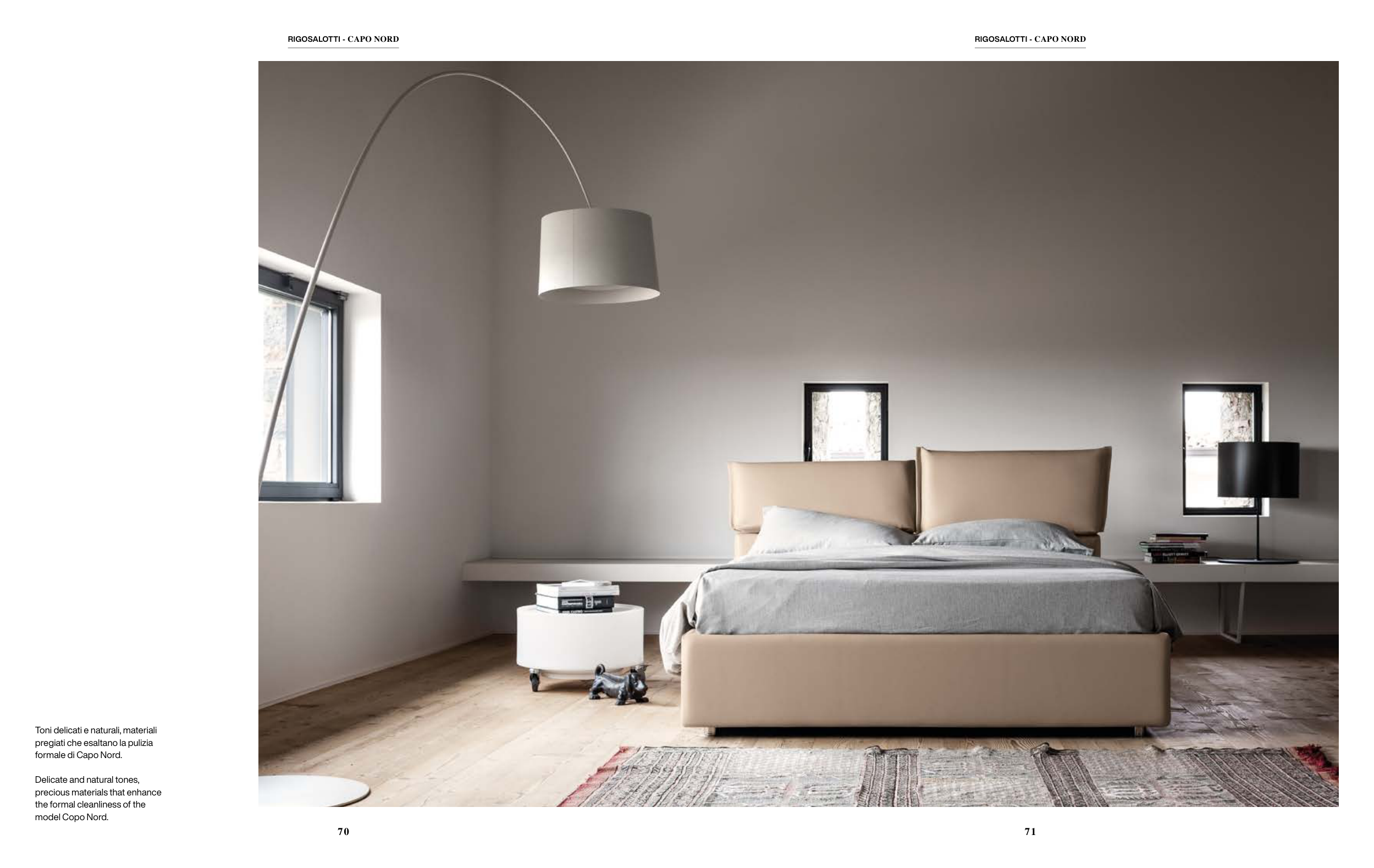 Toni delicati e naturali, materiali pregiati che esaltano la pulizia formale di Capo Nord. Delicate and natural tones, precious materials that enhance the formal cleanliness of the model Copo Nord. 70 RIGOSALOTTI - CAPO NORD 71 RIGOSALOTTI - CAPO NORD