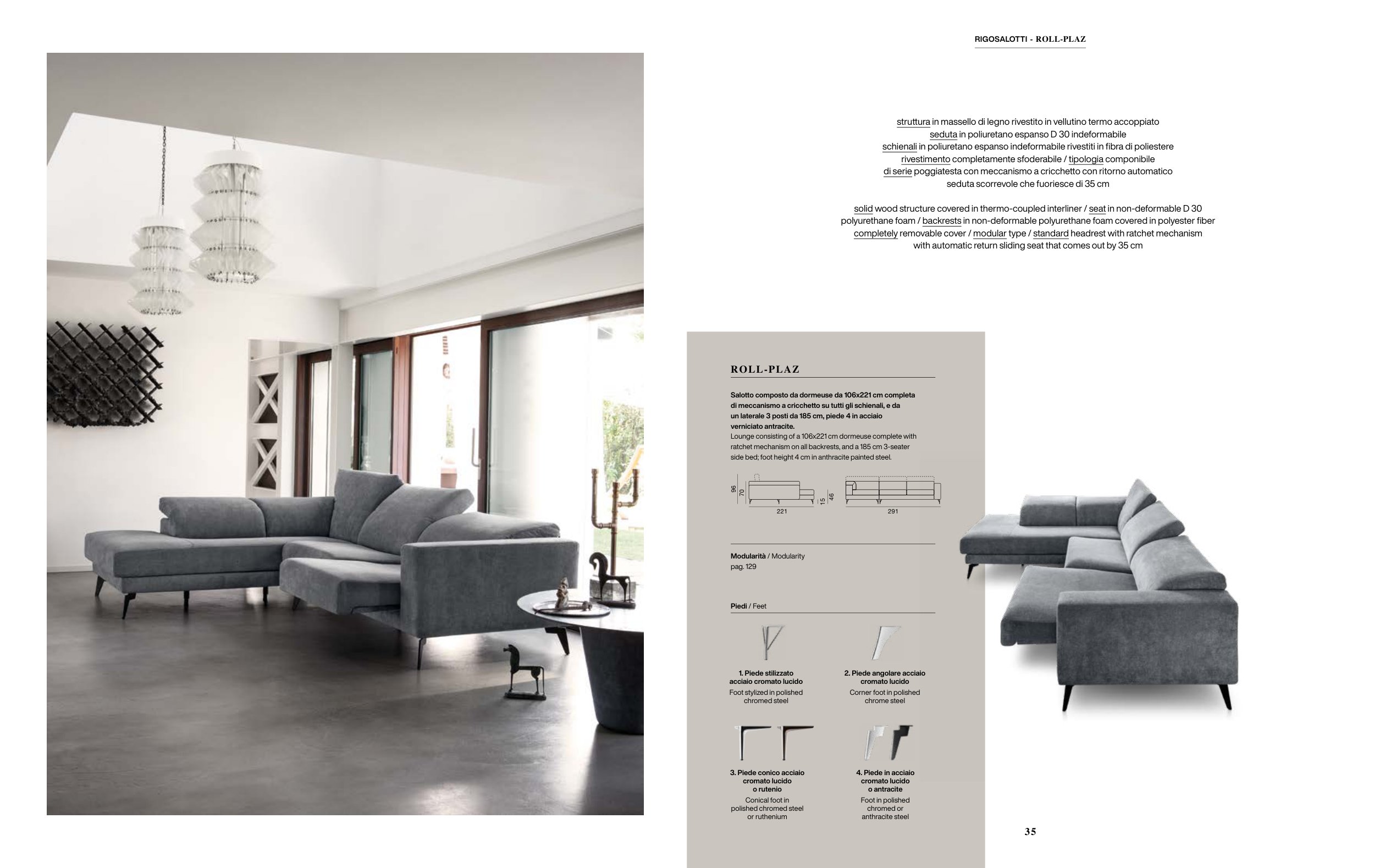 ratchet mechanism on all backrests, and a 185 cm 3-seater