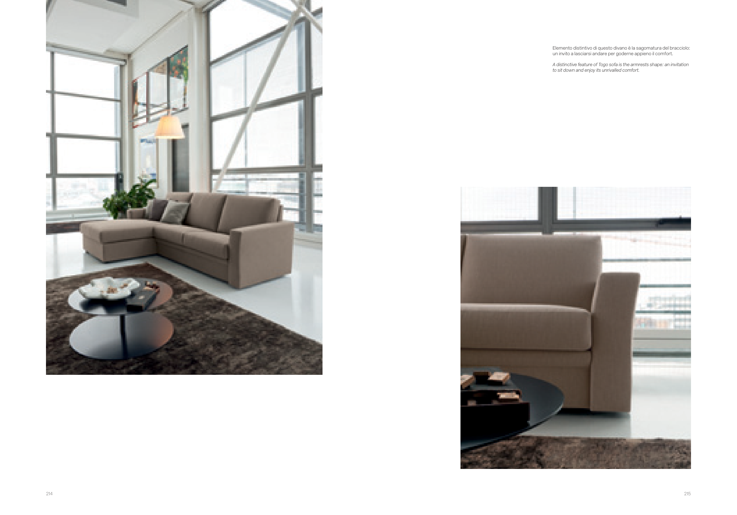 A distinctive feature of Togo sofa is the armrests shape: an invitation
