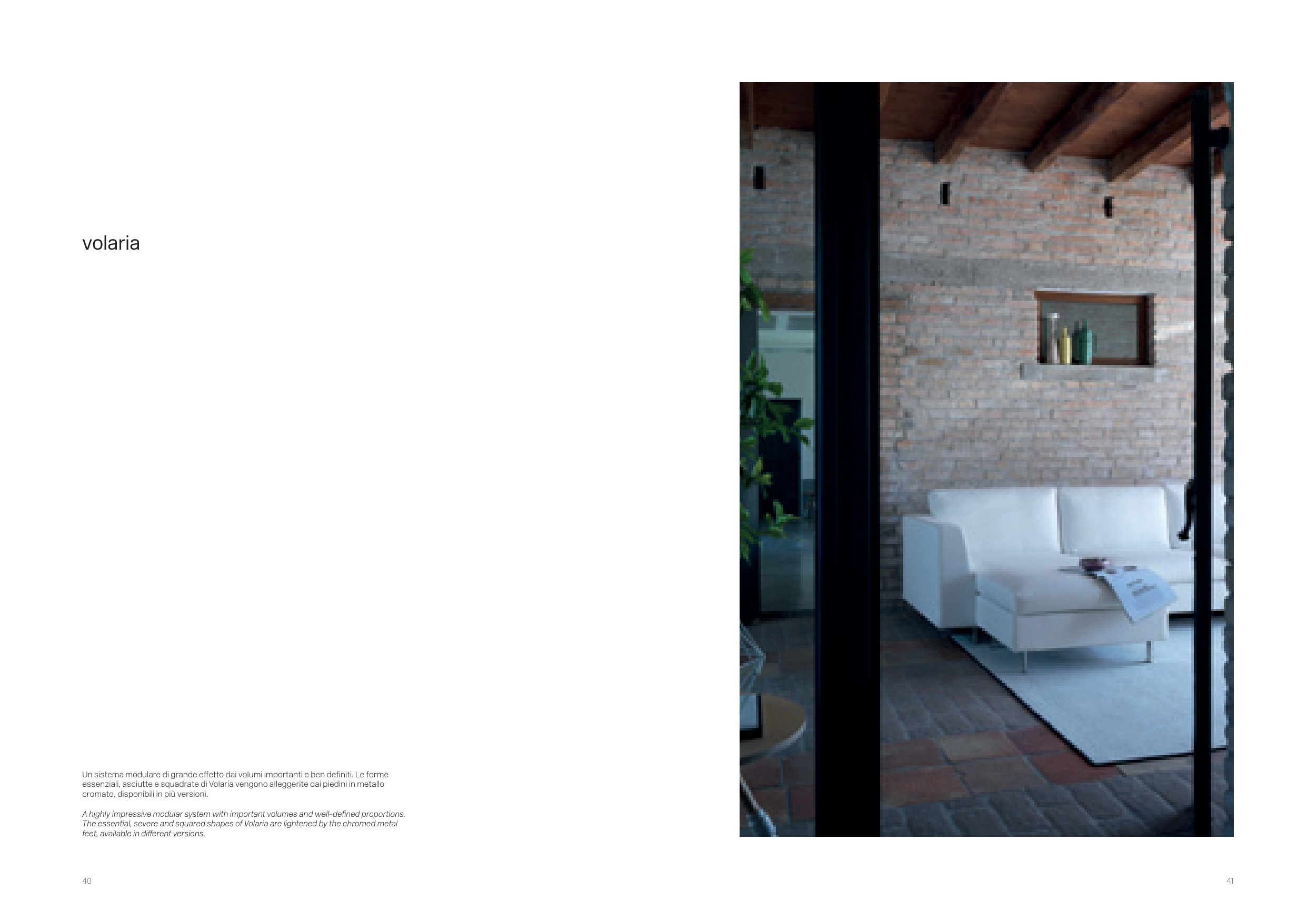 essenziali, asciutte e squadrate di Volaria vengono alleggerite dai piedini in metallo