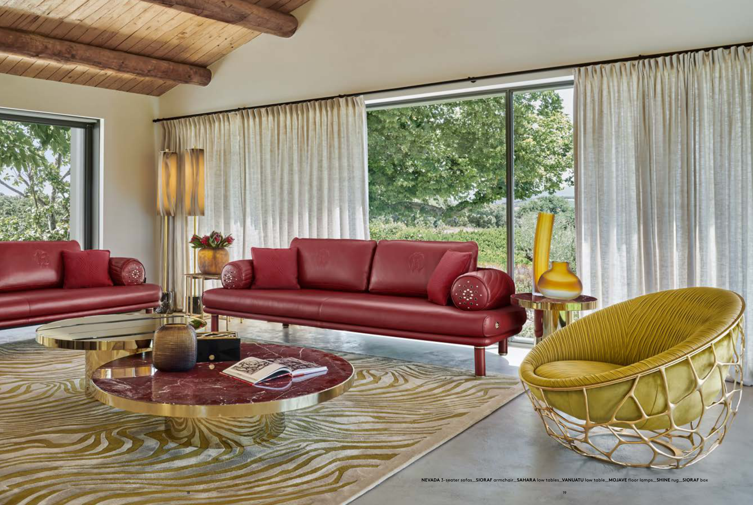 NEVADA 3-seater sofas_SIORAF armchair_SAHARA low tables_VANUATU low table_MOJAVE floor lamps_SHINE rug_SIORAF box