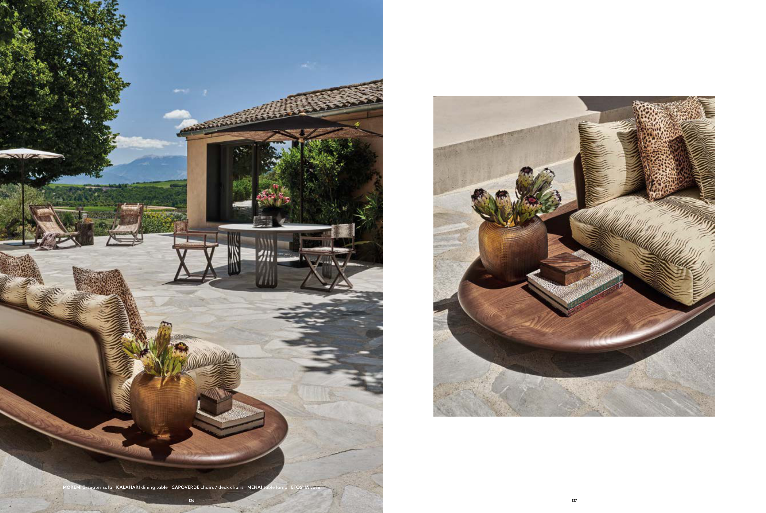 MOREMI 3-seater sofa_KALAHARI dining table_CAPOVERDE chairs / deck chairs_MENAI table lamp_ETOSHA vase