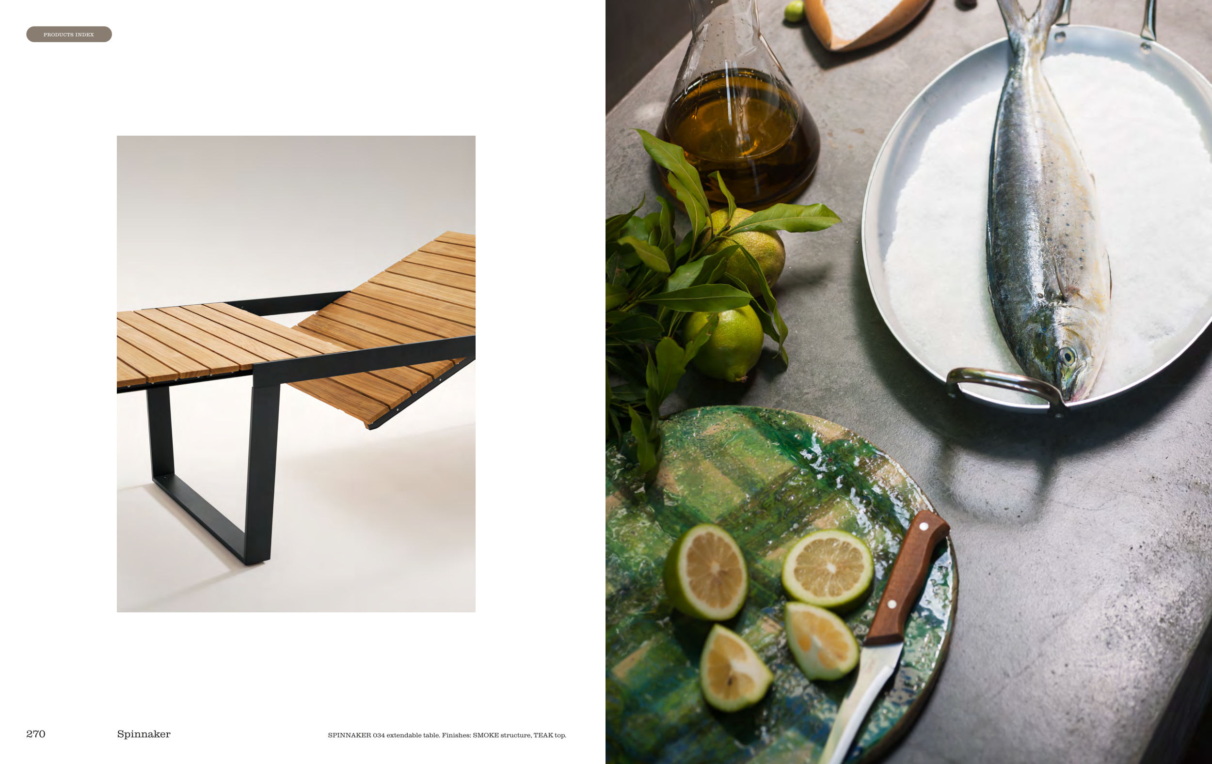 SPINNAKER 034 extendable table. Finishes: SMOKE structure, TEAK top.
