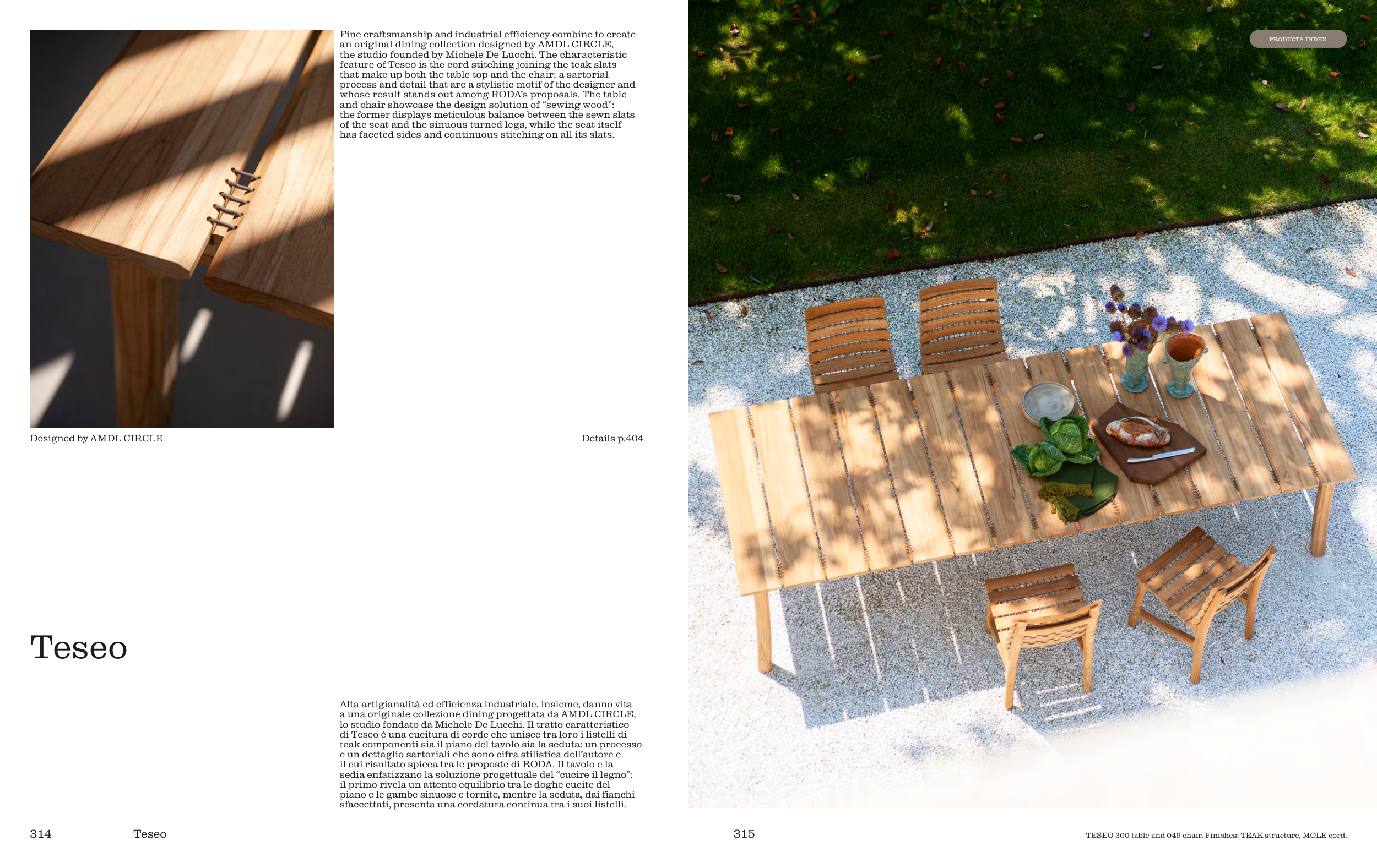 TESEO 300 table and 049 chair. Finishes: TEAK structure, MOLE cord.