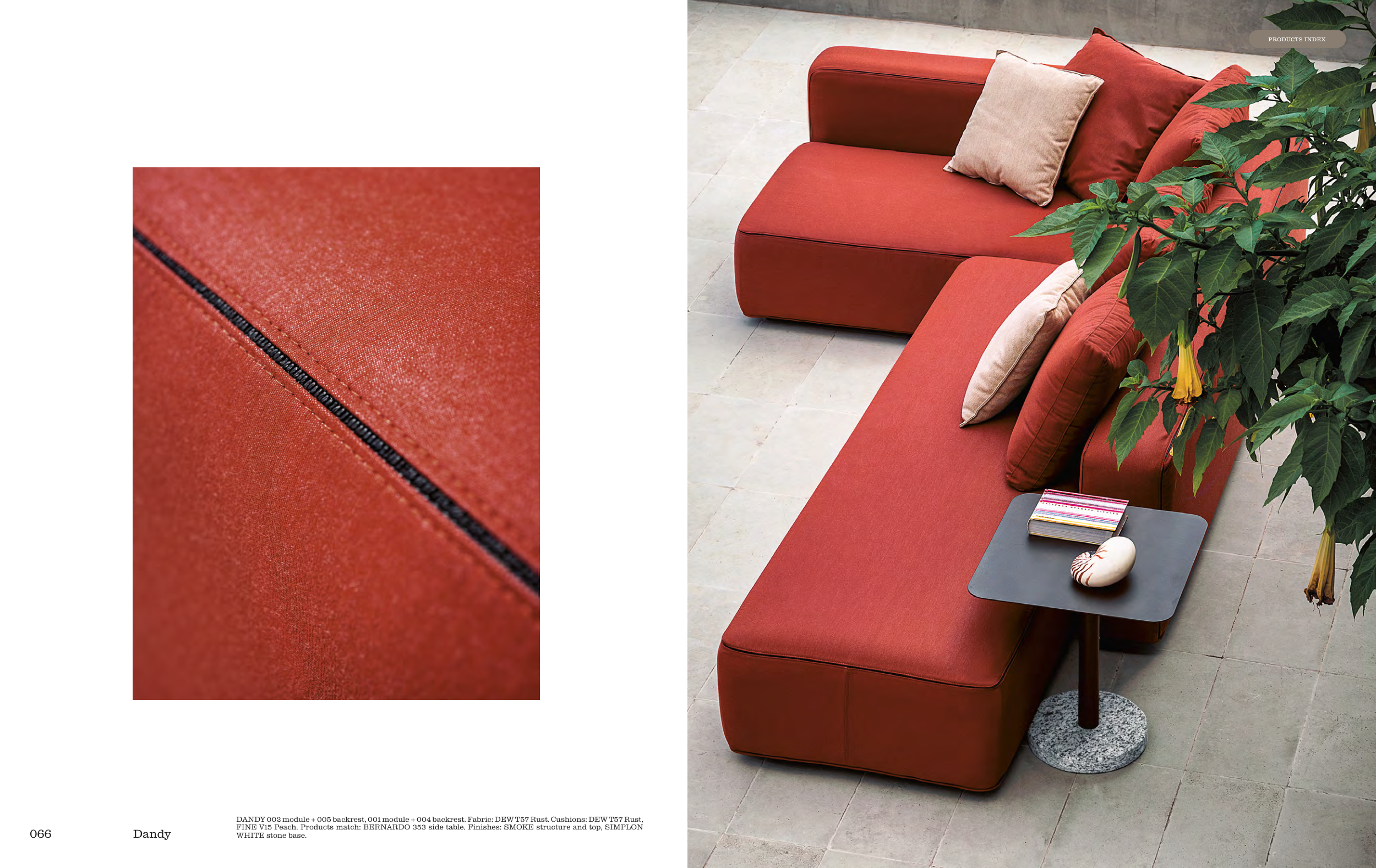 DANDY 002 module + 005 backrest, 001 module + 004 backrest. Fabric: DEW T57 Rust. Cushions: DEW T57 Rust,