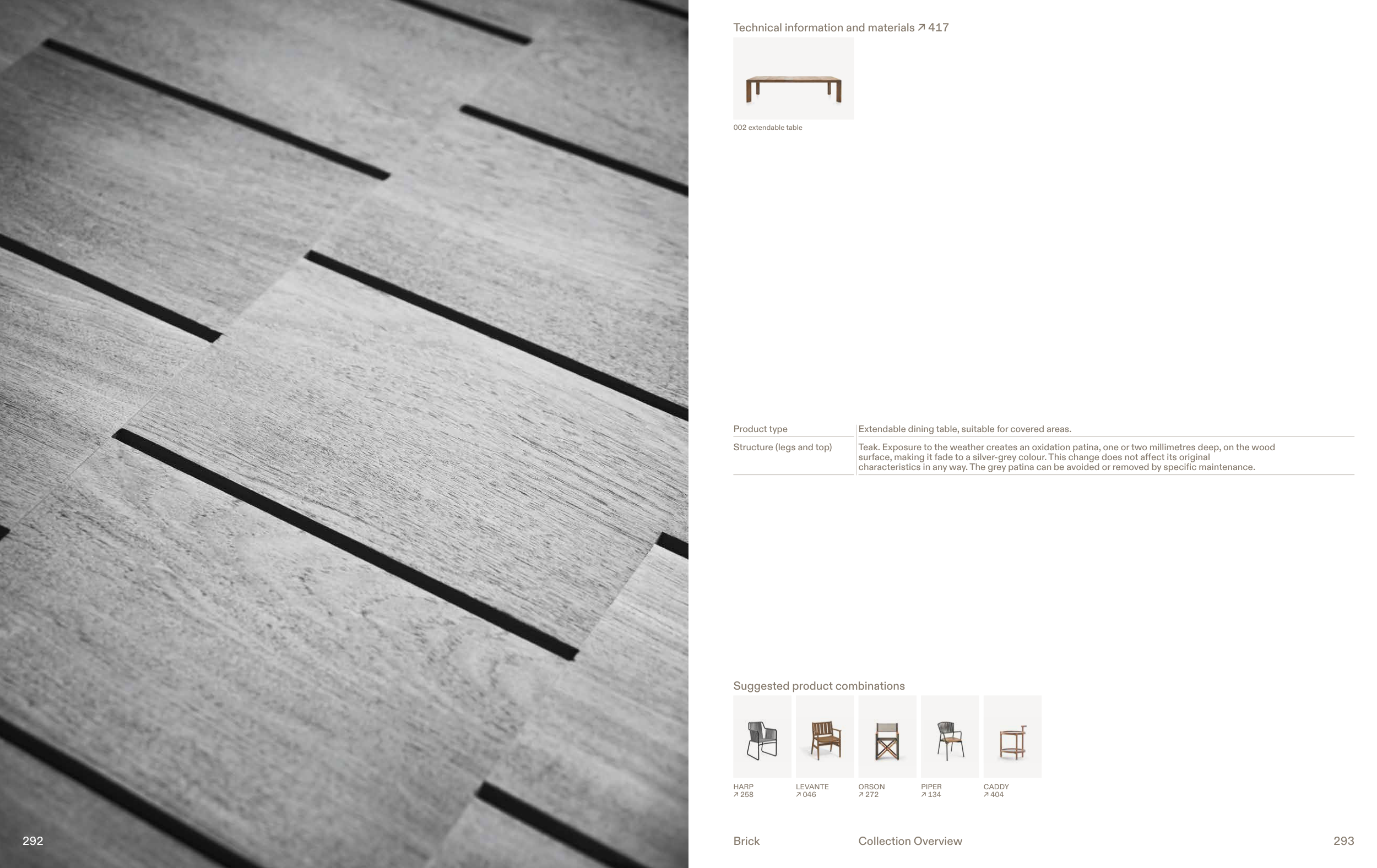Teak. Exposure to the weather creates an oxidation patina, one or two millimetres deep, on the wood