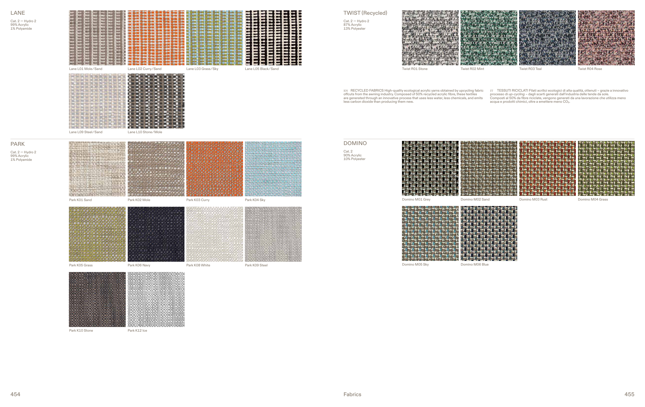 offcuts from the awning industry. Composed of 50% recycled acrylic fibre, these textiles