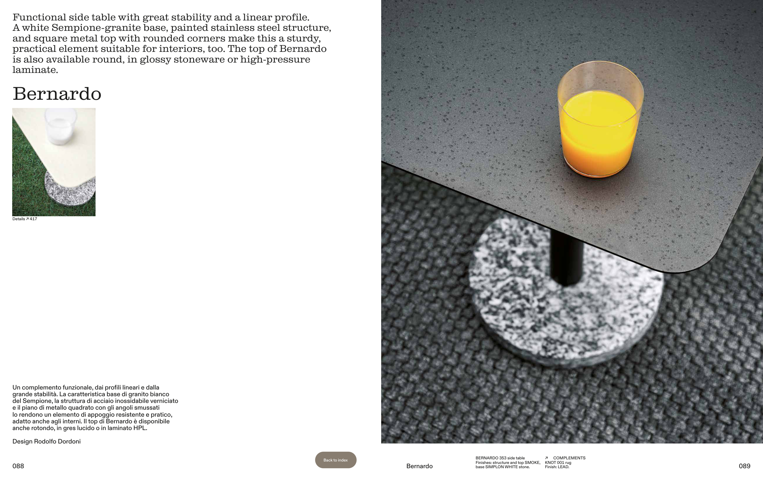 practical element suitable for interiors, too. The top of Bernardo
