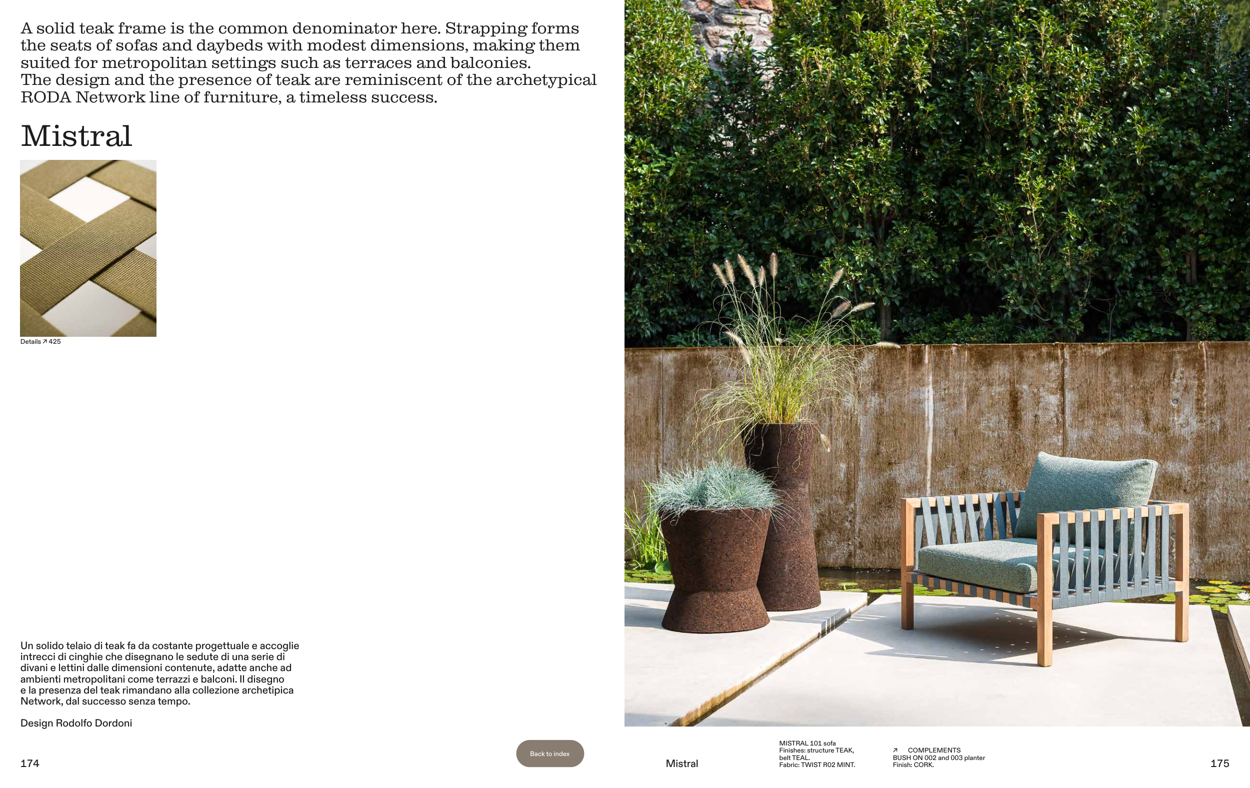 Un solido telaio di teak fa da costante progettuale e accoglie