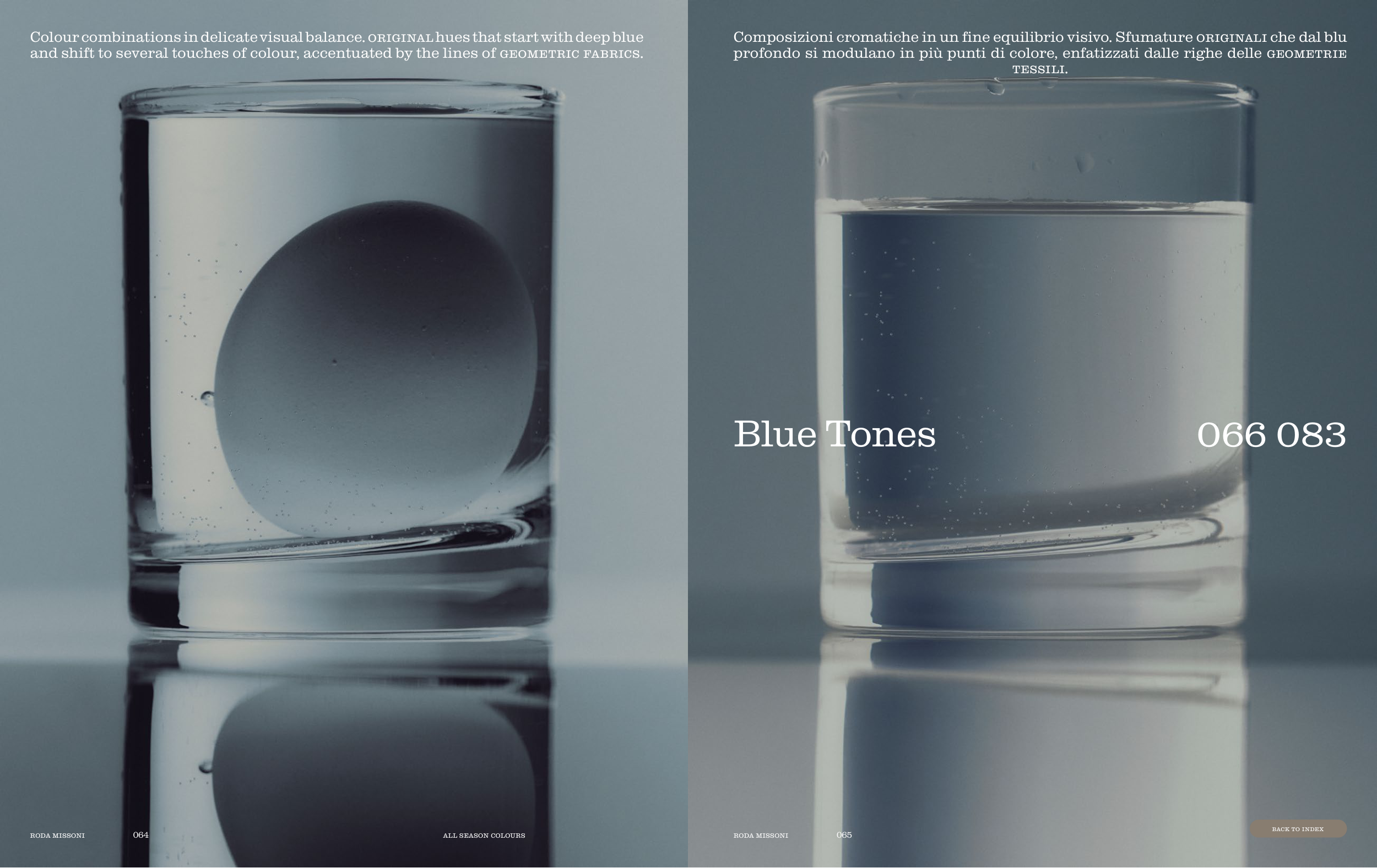 profondo si modulano in più punti di colore, enfatizzati dalle righe delle geometrie