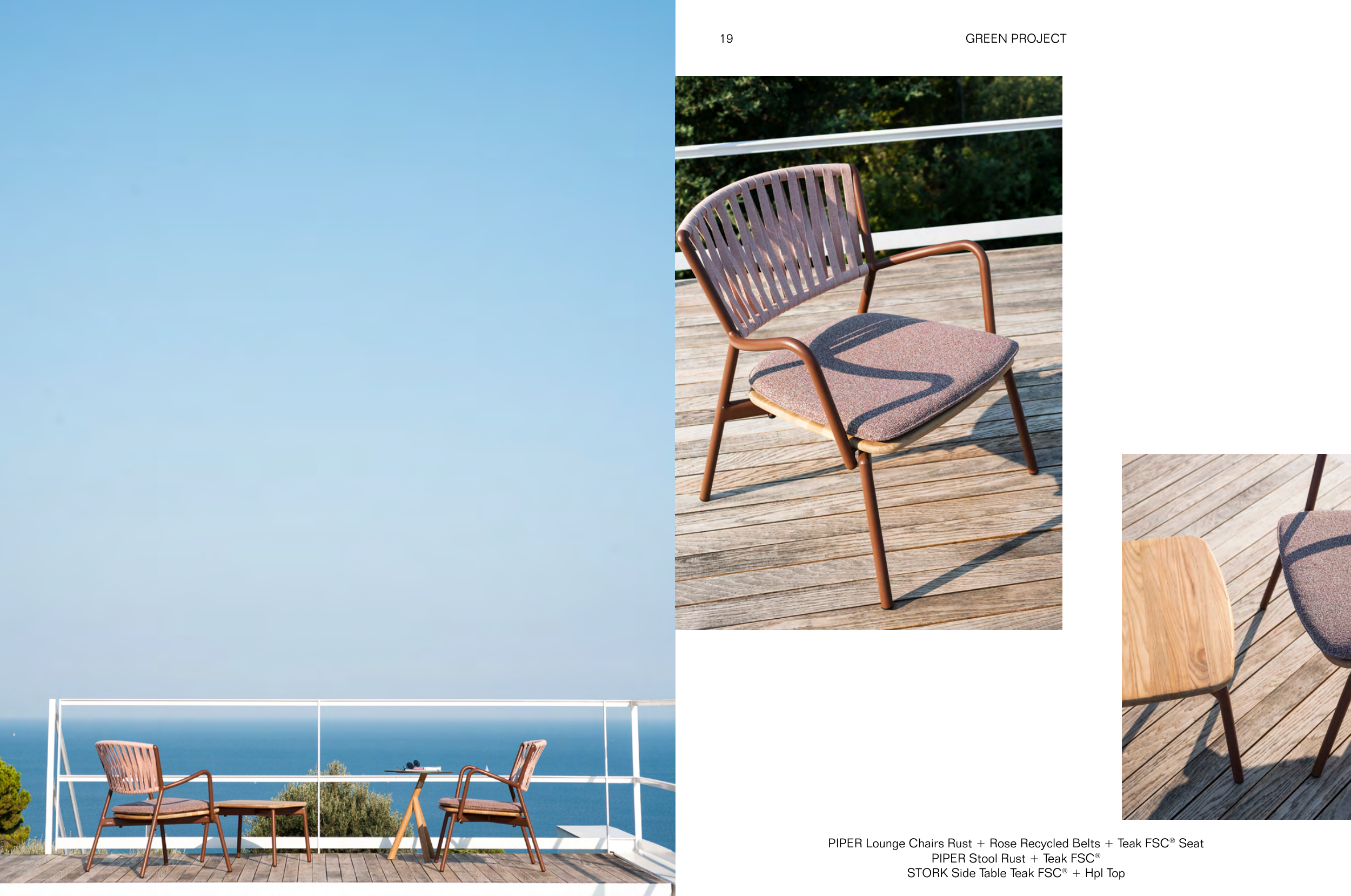 PIPER Lounge Chairs Rust + Rose Recycled Belts + Teak FSC® Seat