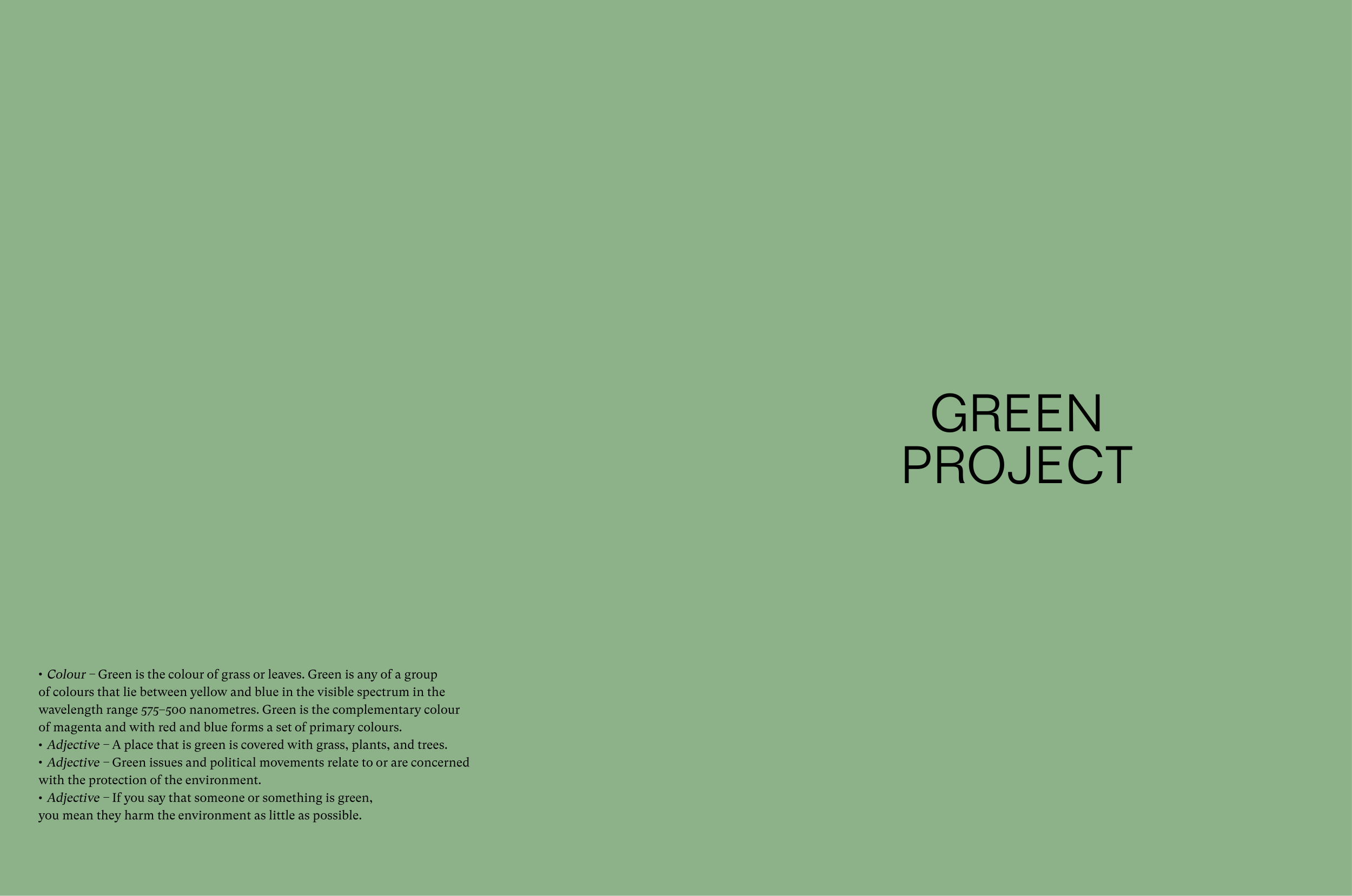 ∙ Colour – Green is the colour of grass or leaves. Green is any of a group