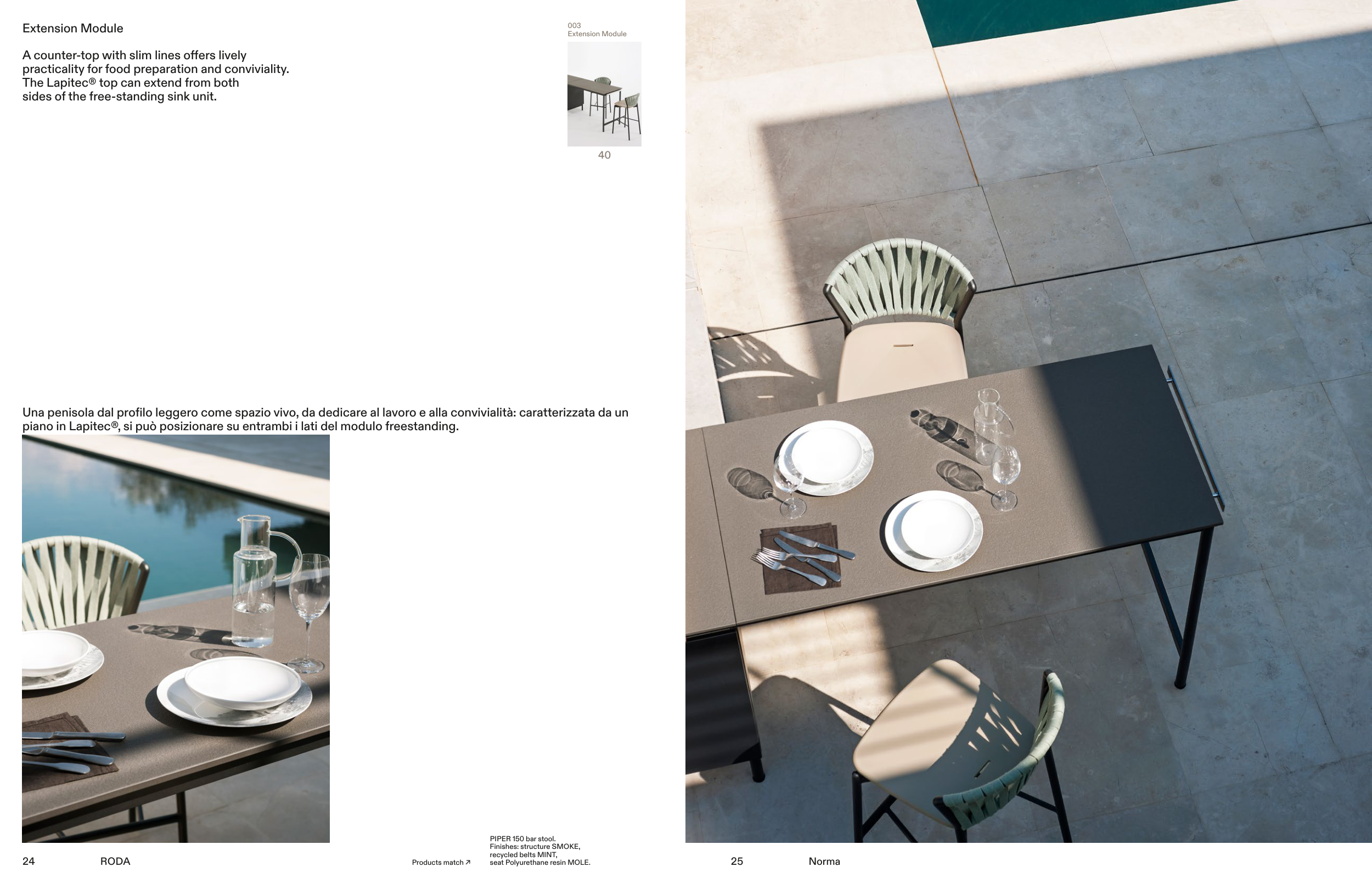 piano in Lapitec®, si può posizionare su entrambi i lati del modulo freestanding.