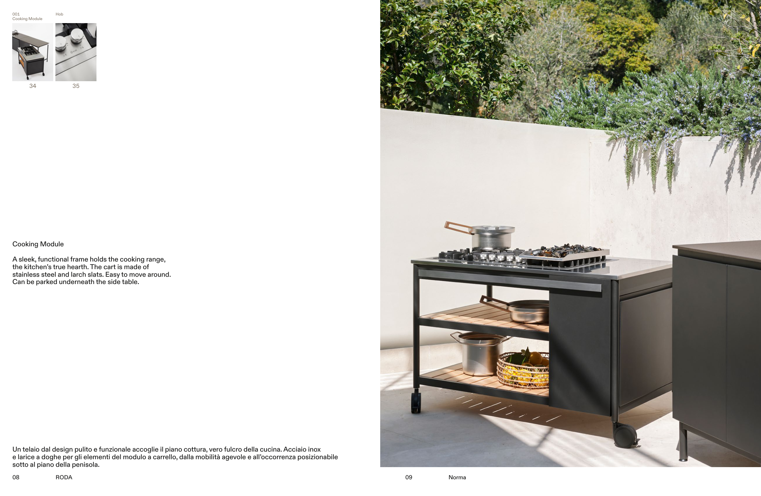 e larice a doghe per gli elementi del modulo a carrello, dalla mobilità agevole e all’occorrenza posizionabile