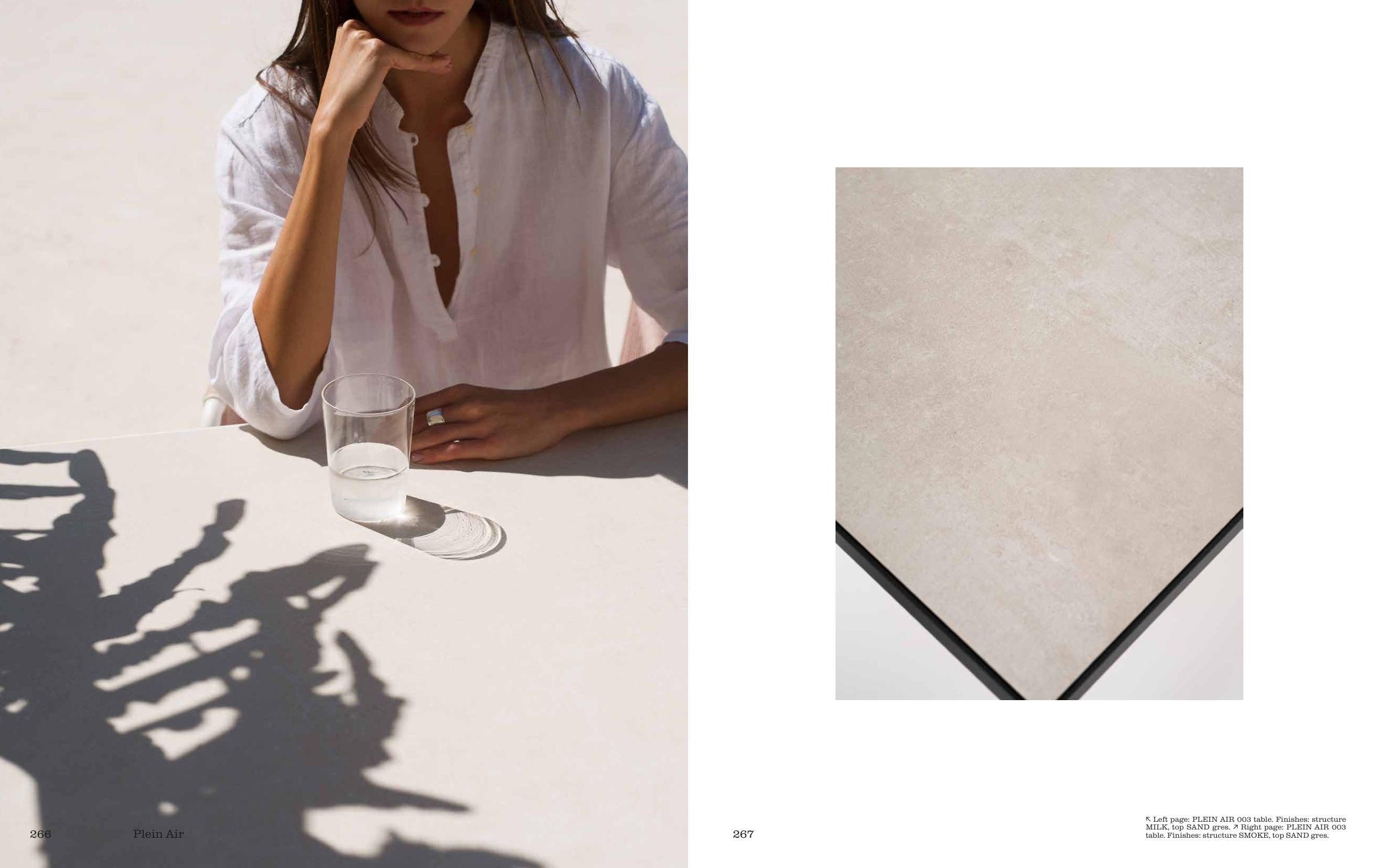 ↖ Left page: PLEIN AIR 003 table. Finishes: structure