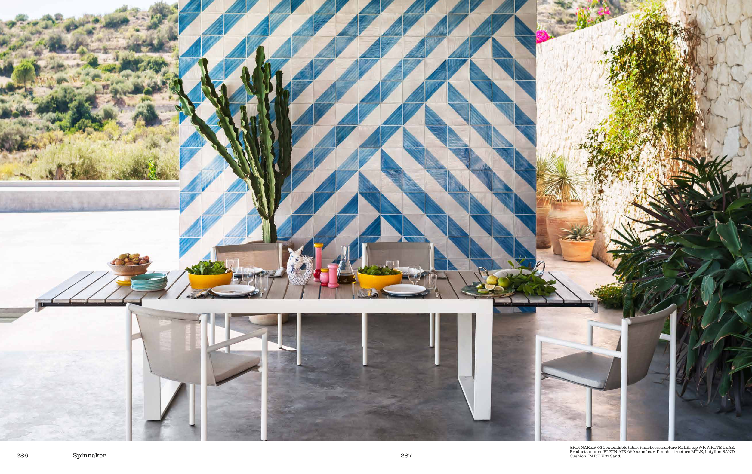 SPINNAKER 034 extendable table. Finishes: structure MILK, top WR WHITE TEAK.