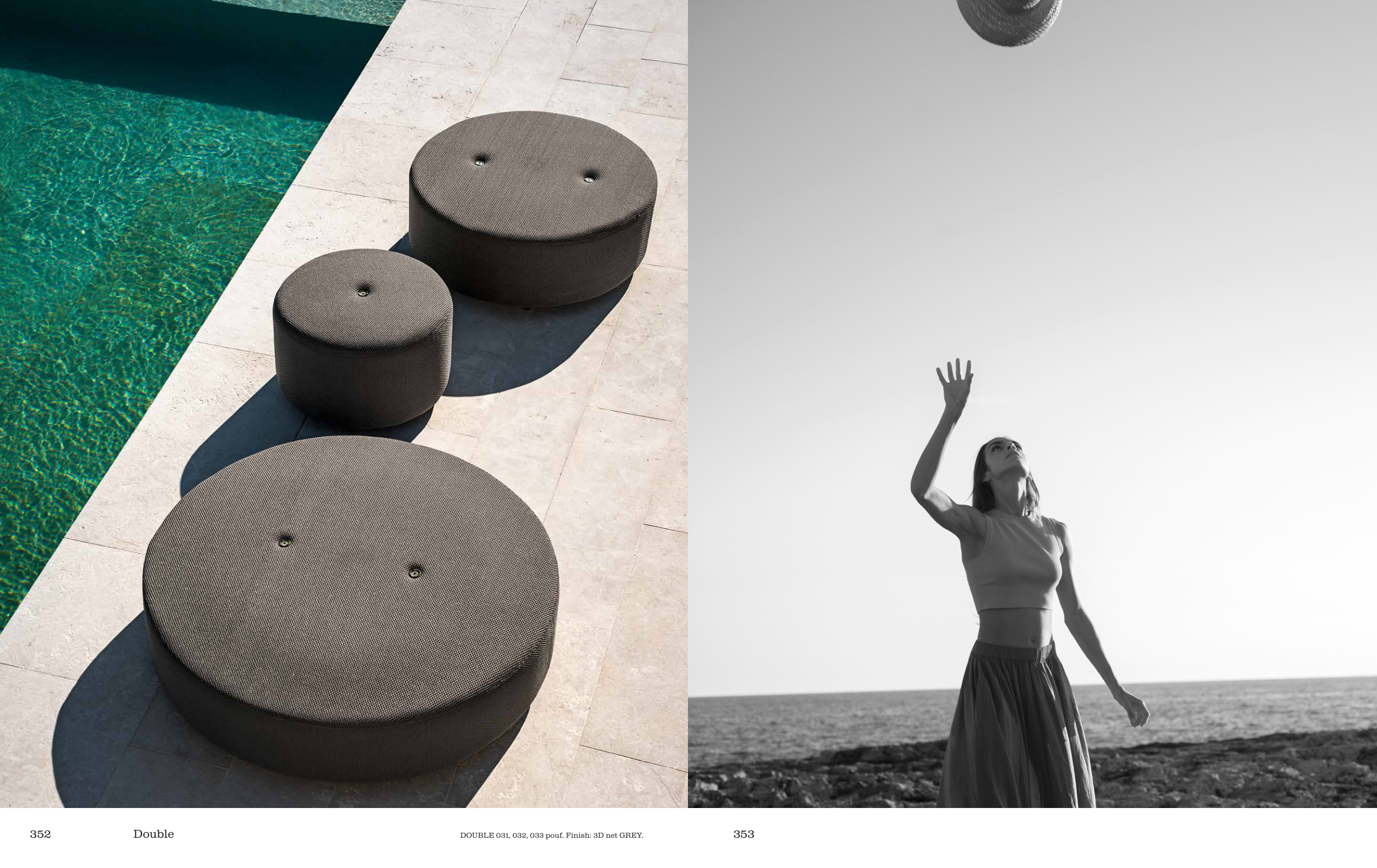 DOUBLE 031, 032, 033 pouf. Finish: 3D net GREY.