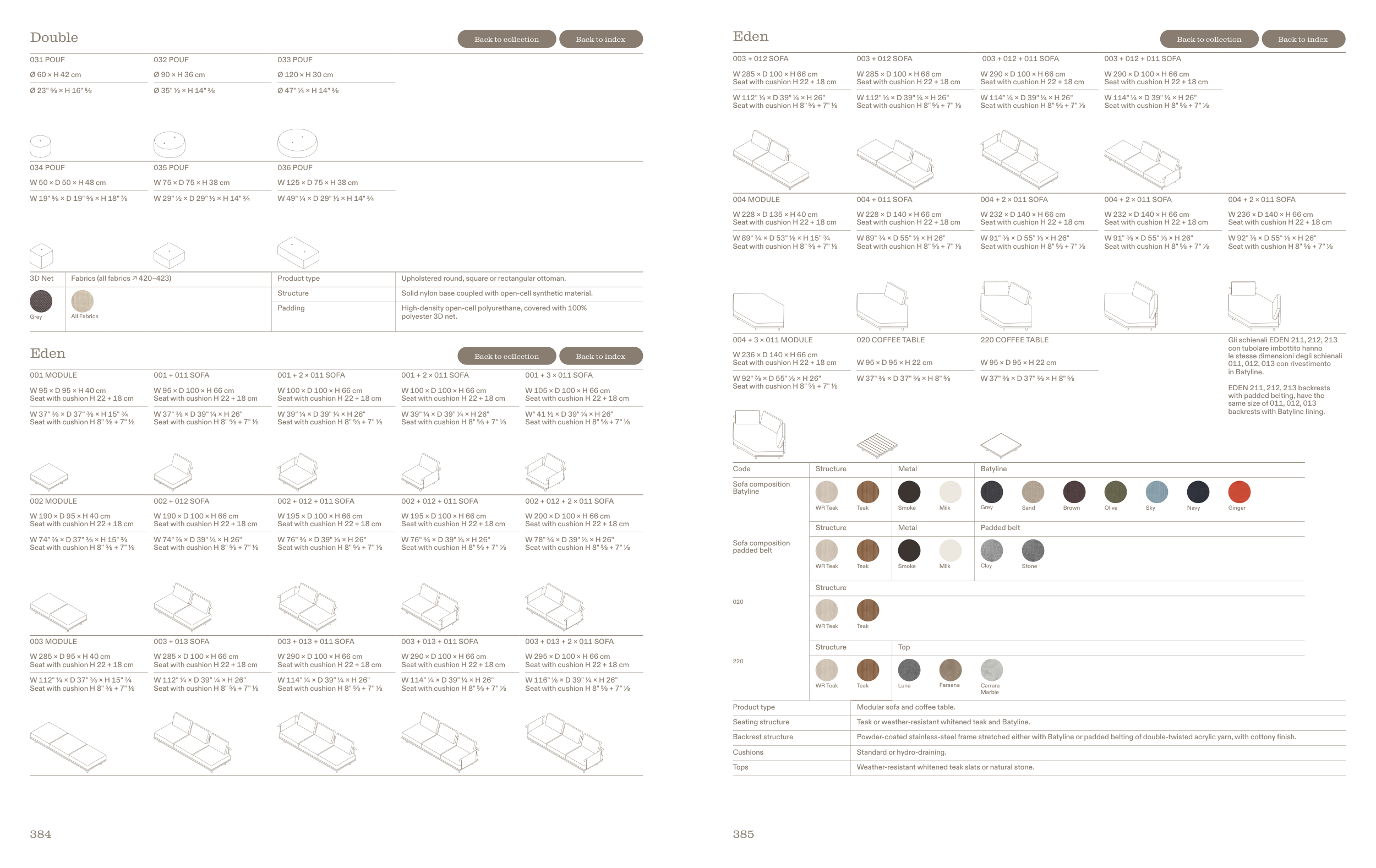 Gli schienali EDEN 211, 212, 213