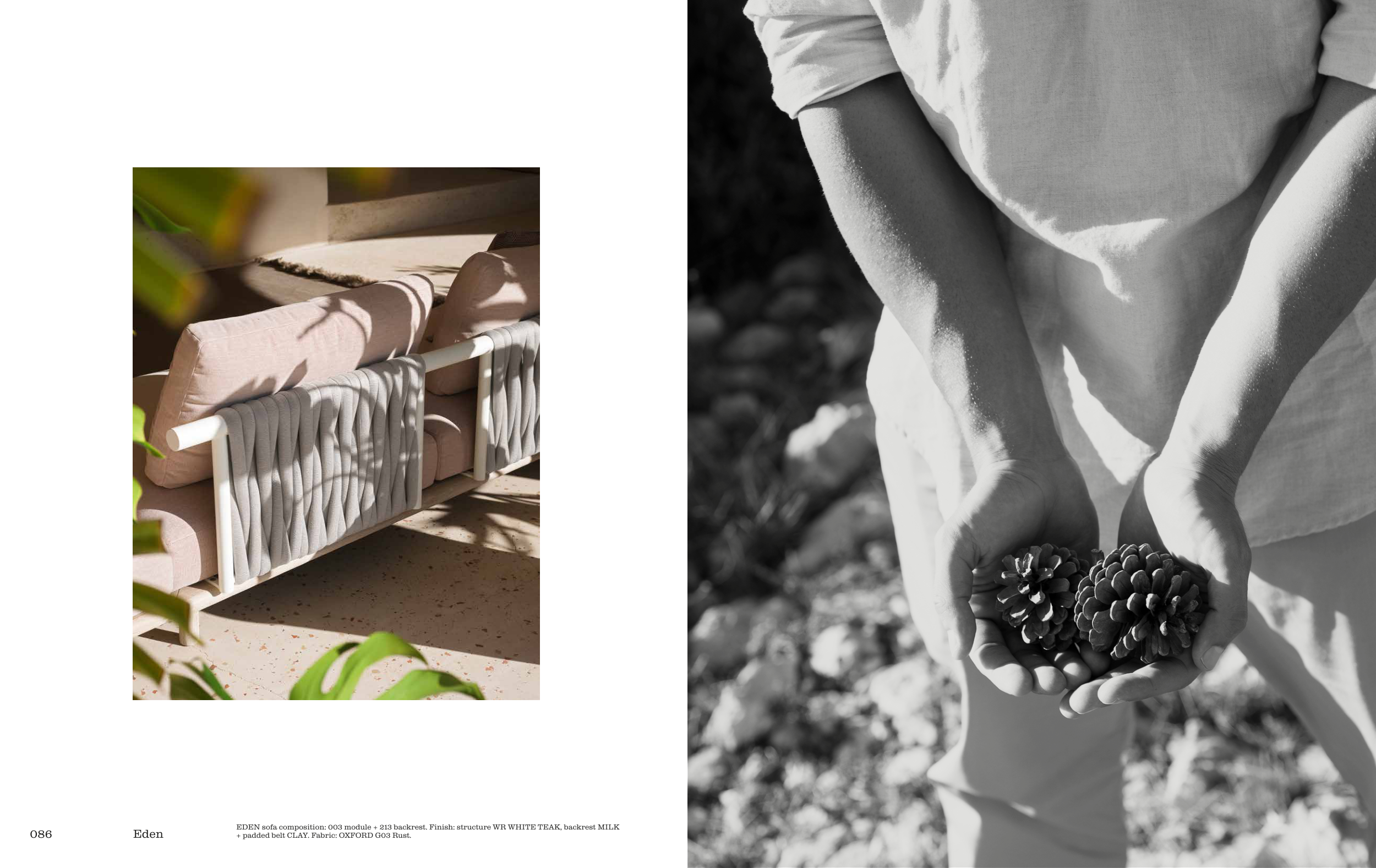 EDEN sofa composition: 003 module + 213 backrest. Finish: structure WR WHITE TEAK, backrest MILK