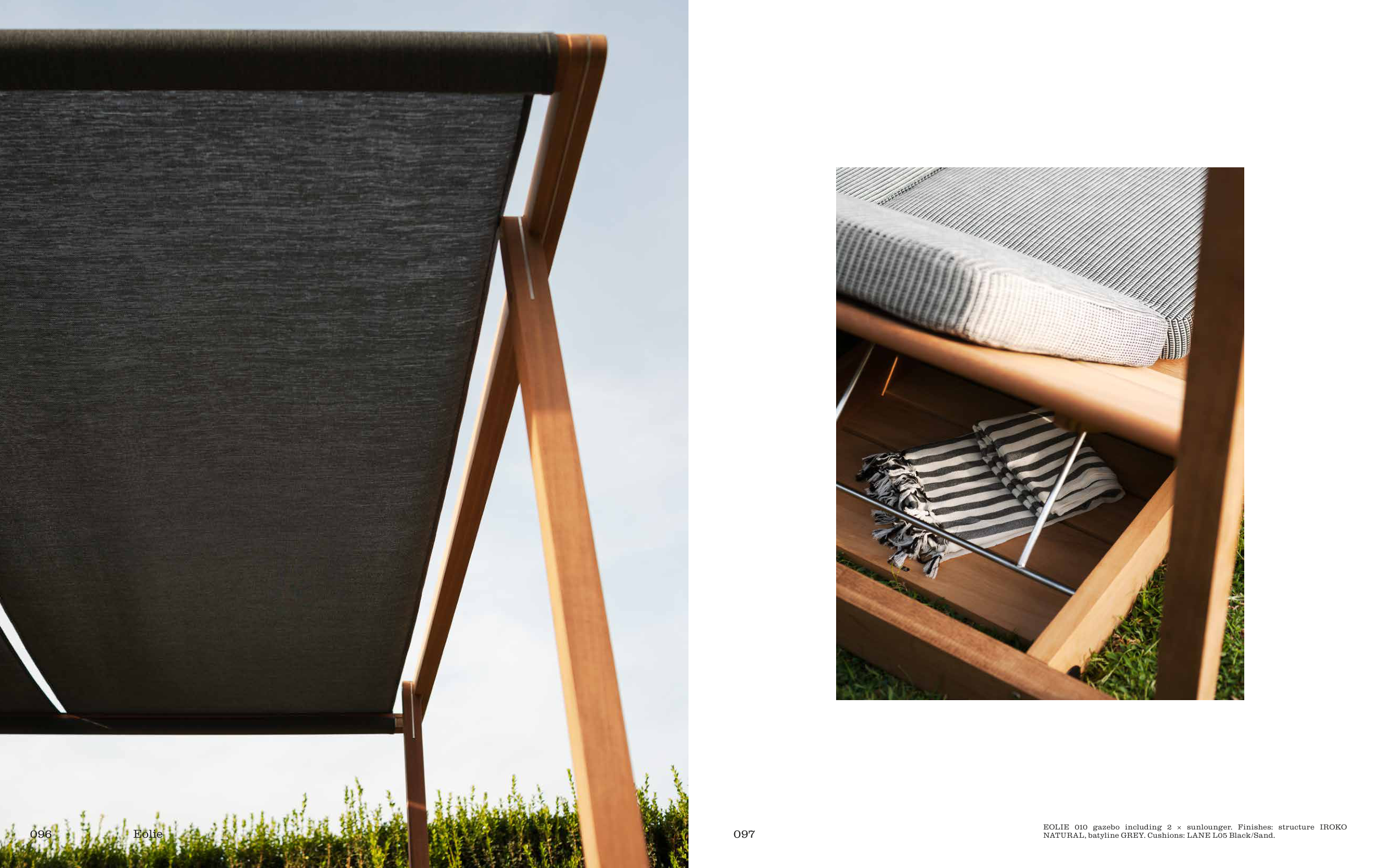 EOLIE 010 gazebo including 2 × sunlounger. Finishes: structure IROKO