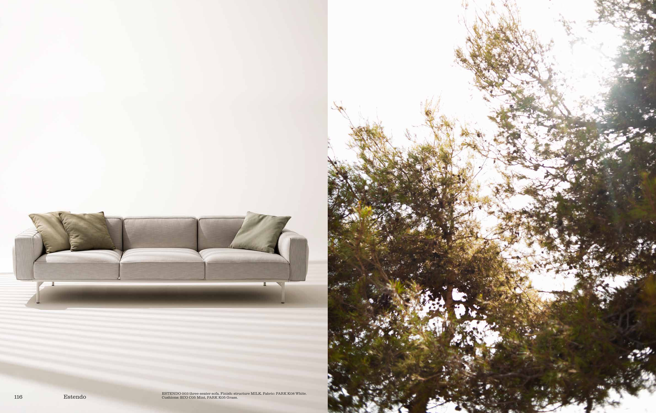 ESTENDO 003 three-seater sofa. Finish: structure MILK. Fabric: PARK K08 White.