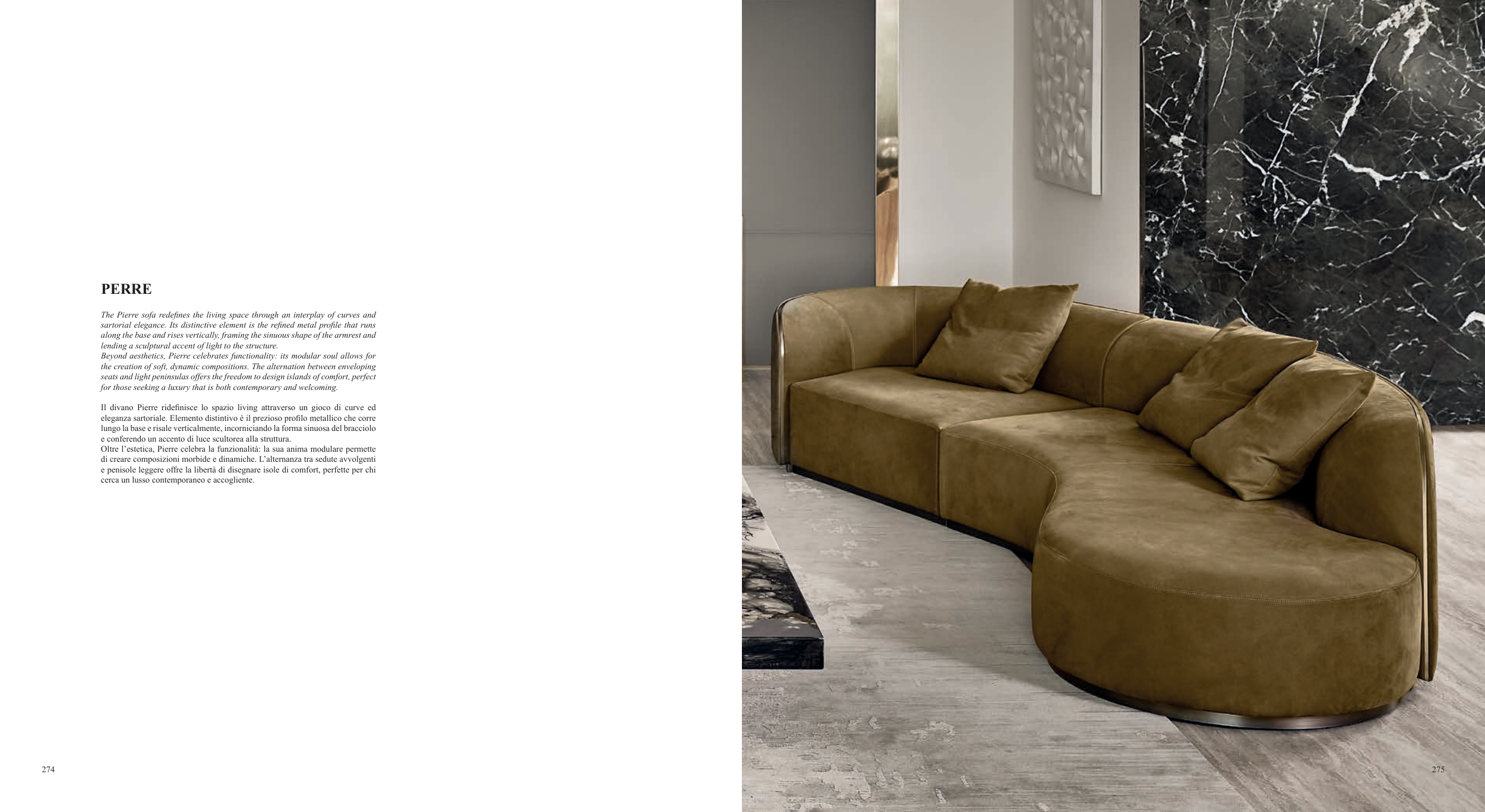 The Pierre sofa redefines the living space through an interplay of curves and