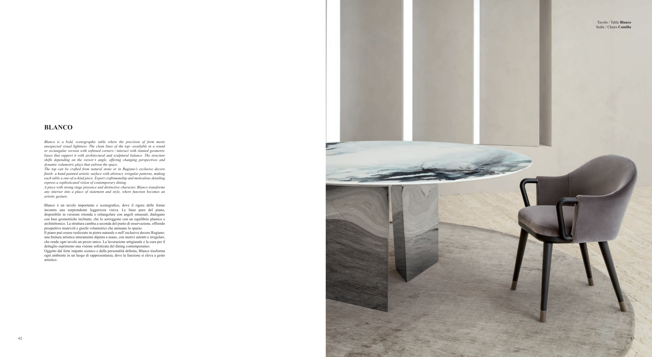 Blanco is a bold, scenographic table where the precision of form meets