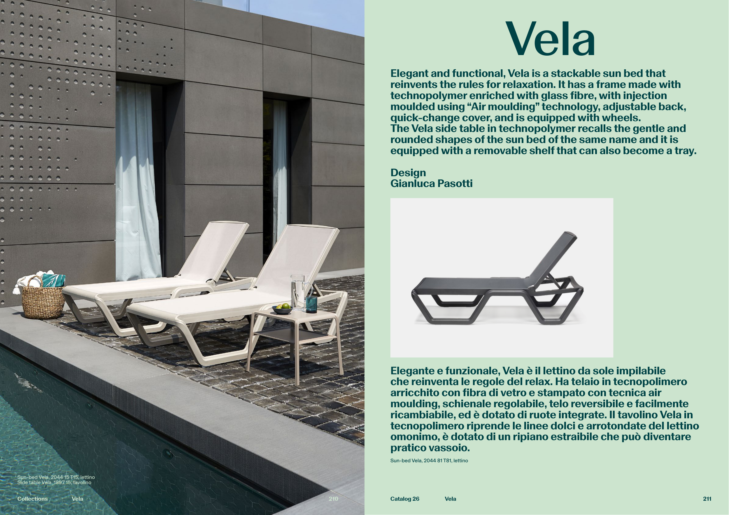 Elegante e funzionale, Vela è il lettino da sole impilabile
