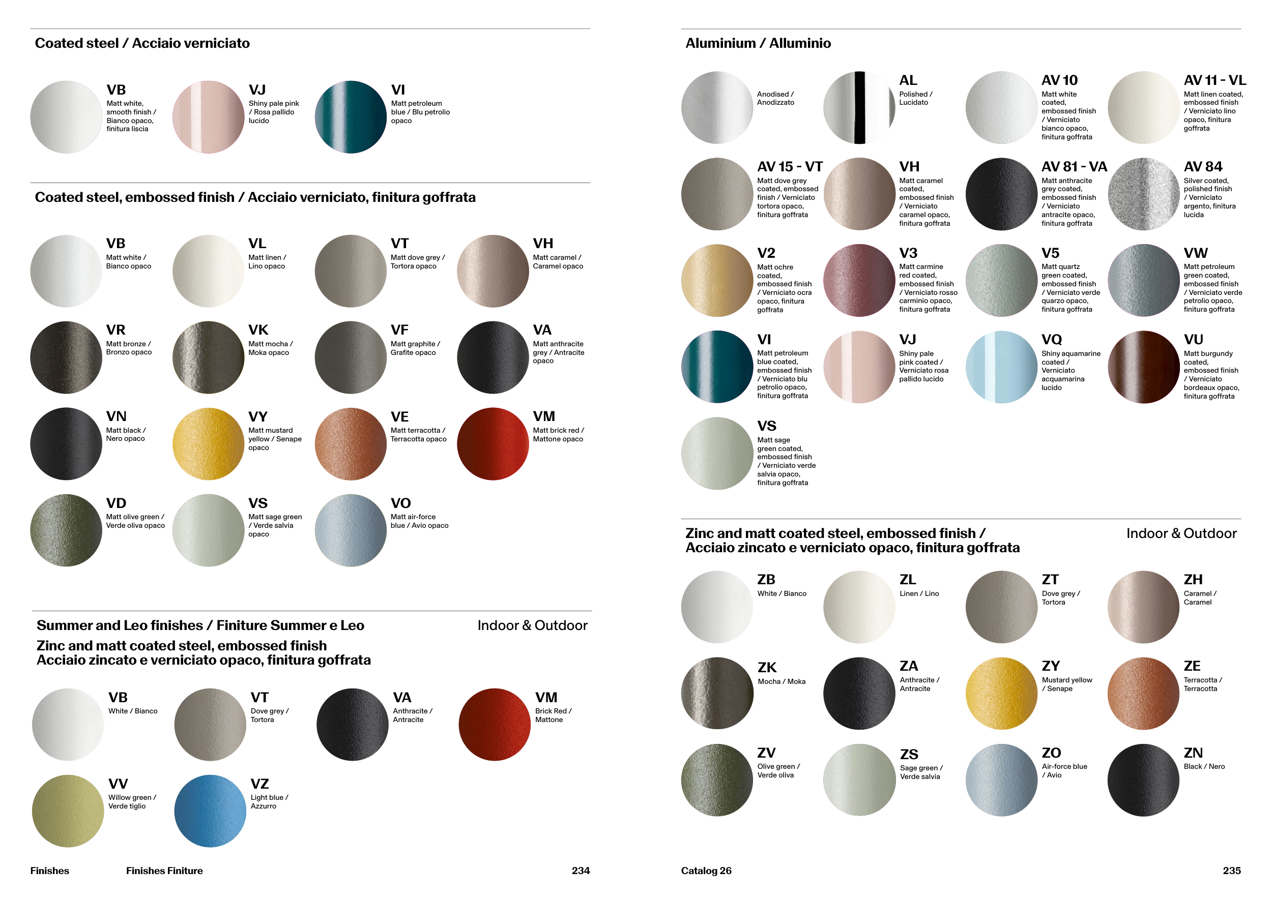 Coated steel, embossed finish / Acciaio verniciato, finitura goffrata