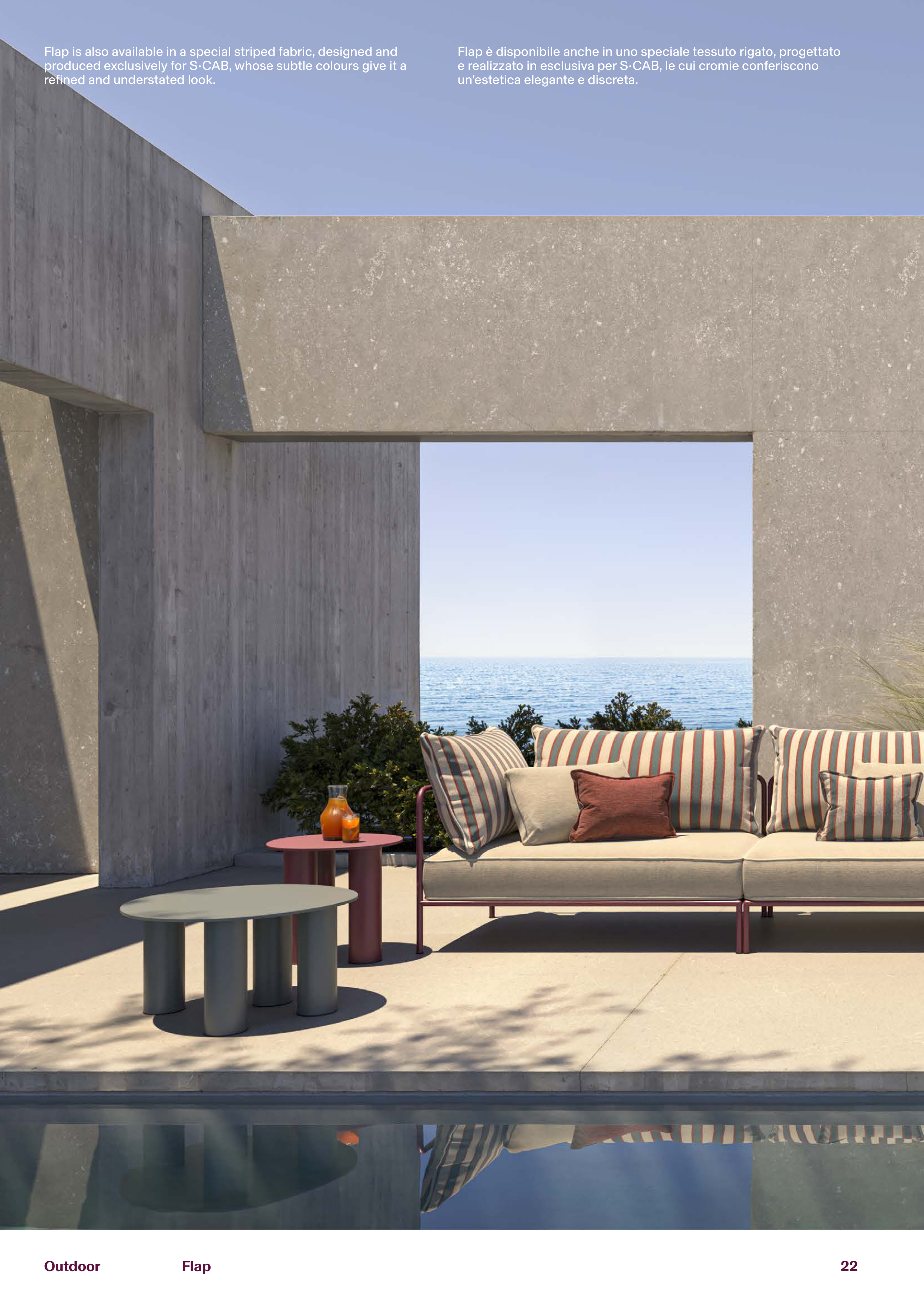 Flap è disponibile anche in uno speciale tessuto rigato, progettato