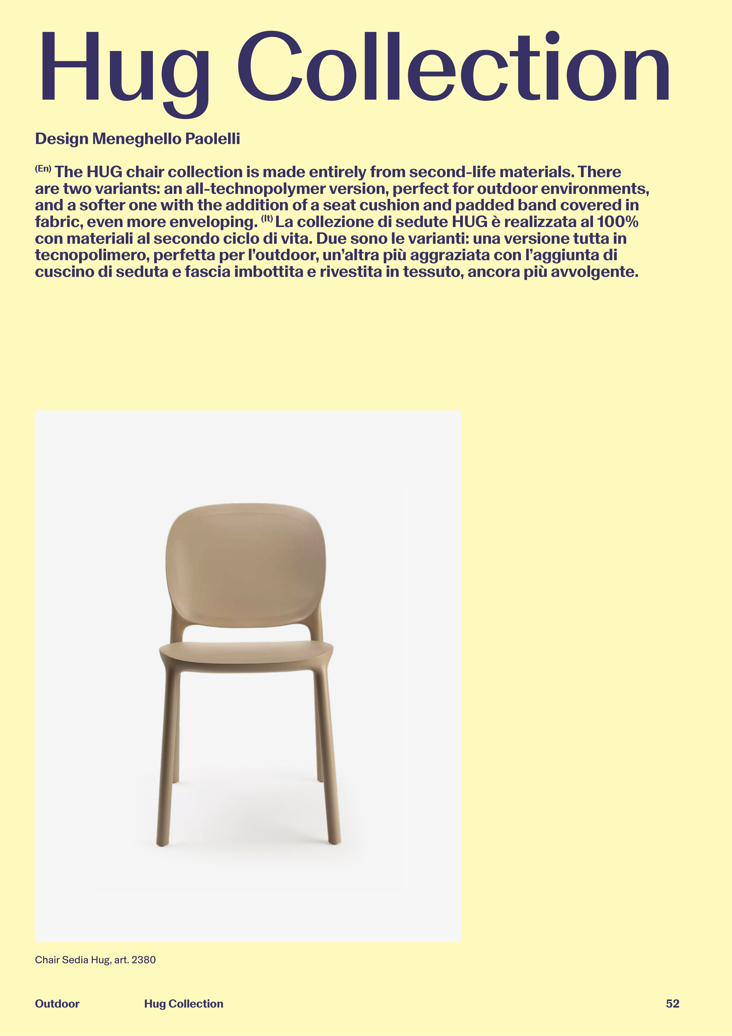 (En) The HUG chair collection is made entirely from second-life materials. There