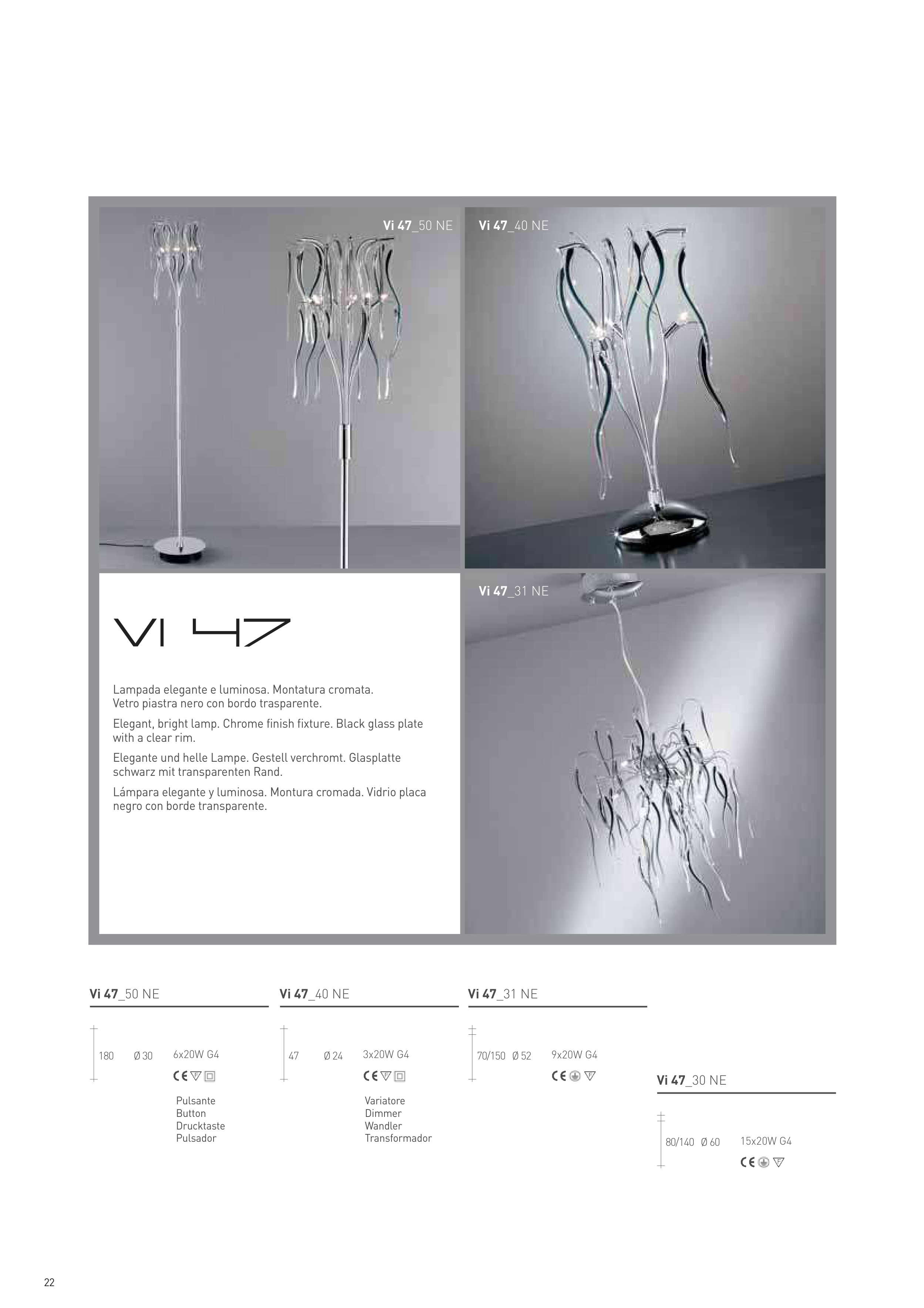 Lampada elegante e luminosa. Montatura cromata.