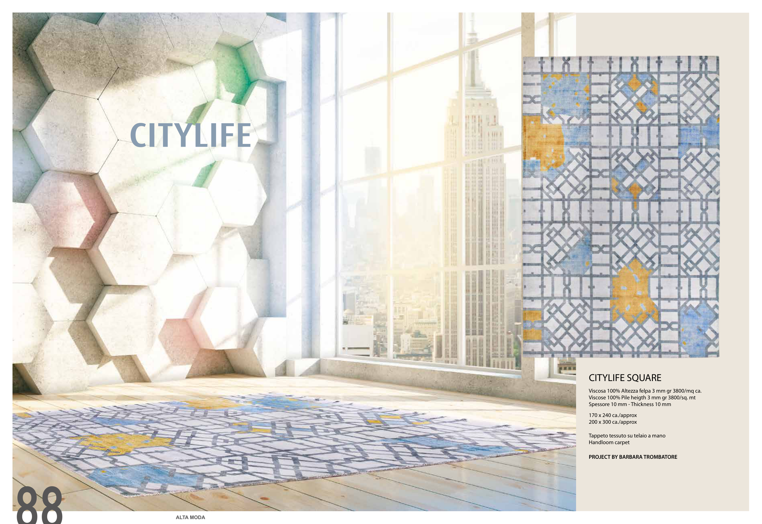 Viscose 100% Pile heigth 3 mm gr 3800/sq. mt