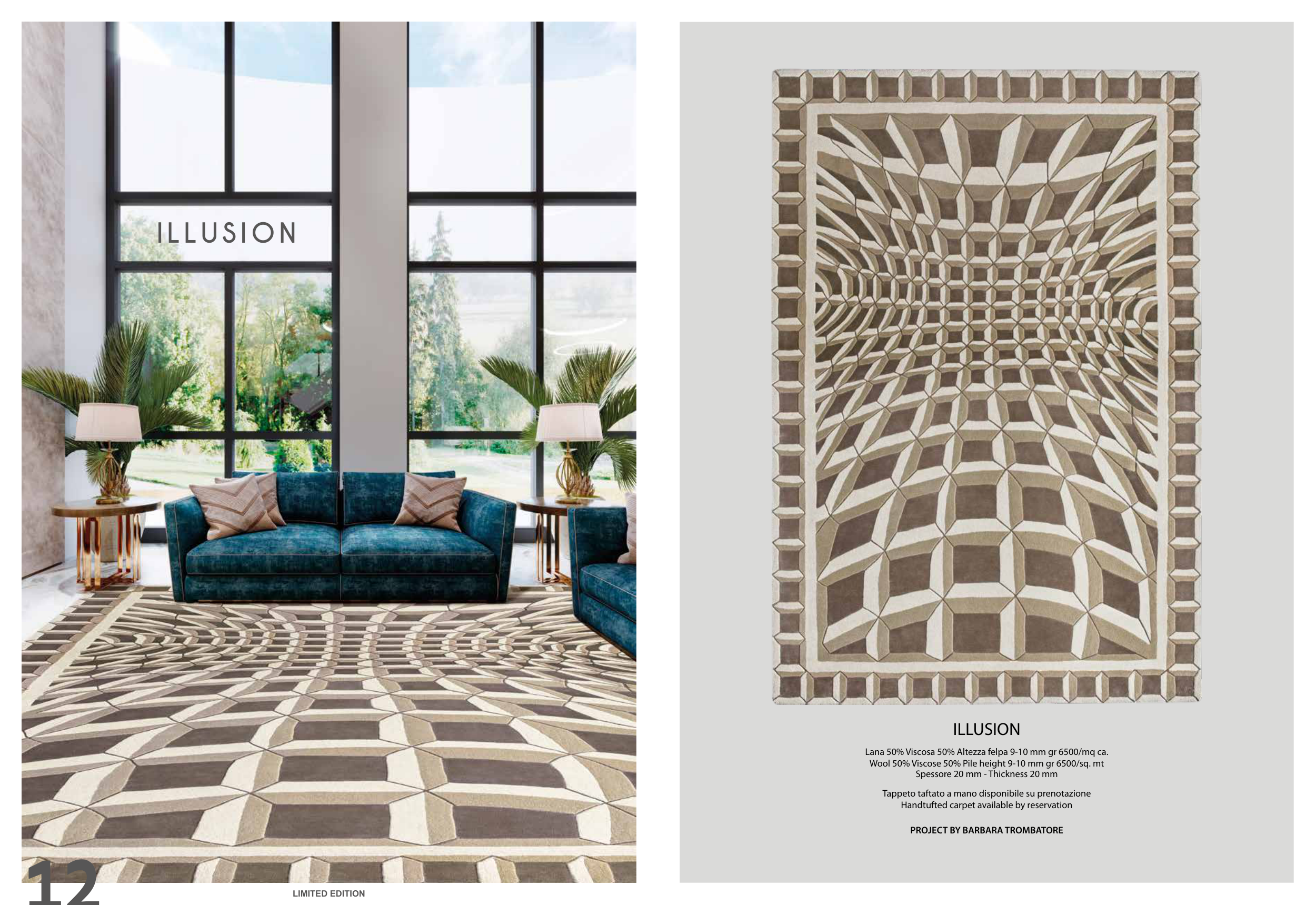 Wool 50% Viscose 50% Pile height 9-10 mm gr 6500/sq. mt