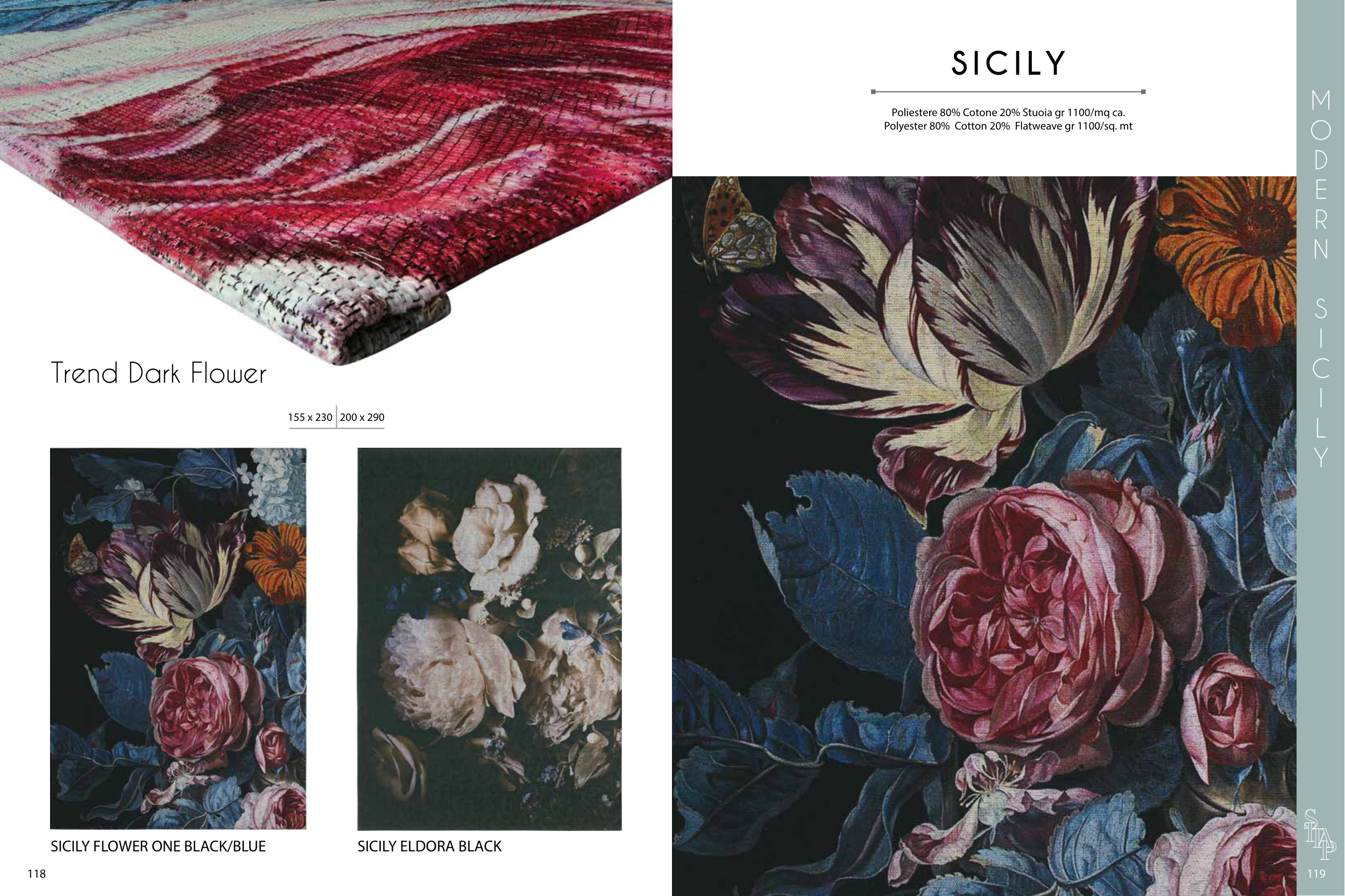 SICILY FLOWER ONE BLACK/BLUE