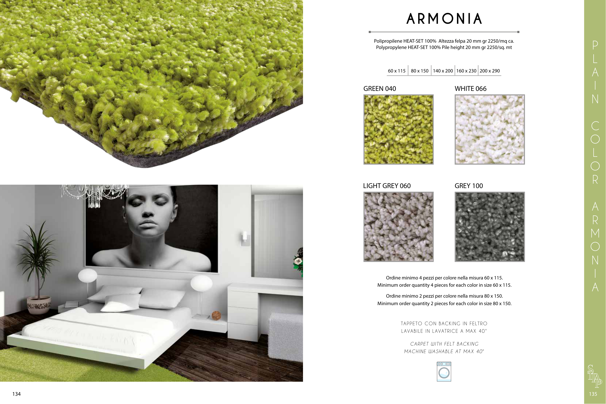 Minimum order quantity 4 pieces for each color in size 60 x 115.