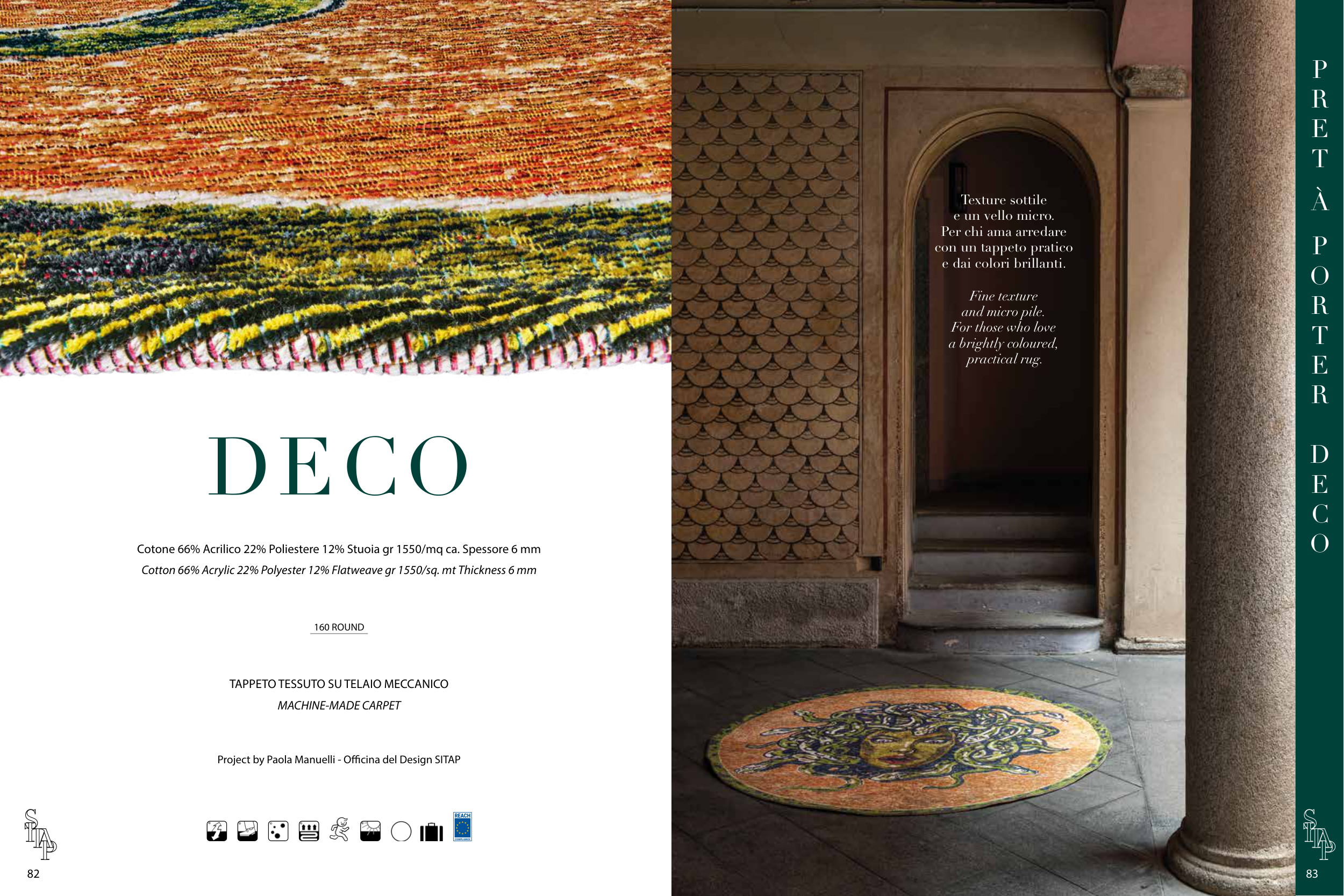 Cotton 66% Acrylic 22% Polyester 12% Flatweave gr 1550/sq. mt Thickness 6 mm